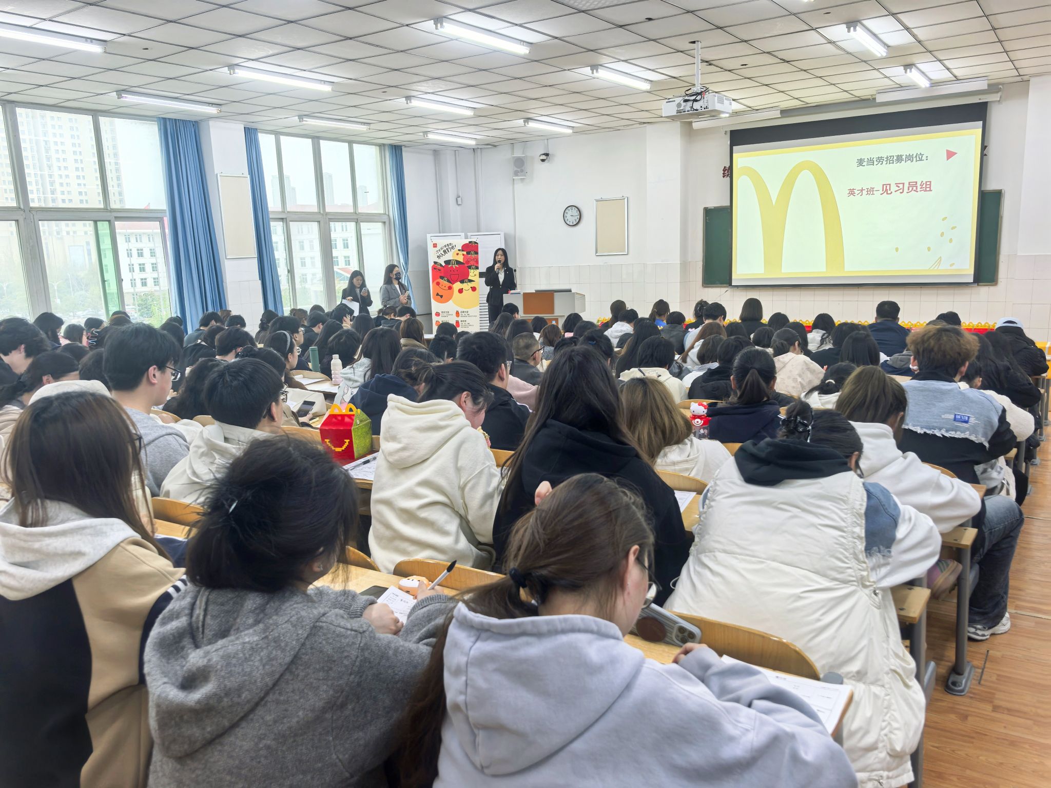 宣讲会伊始,麦当劳中国校招负责人李宁和人力资源部顾问 于海霞从企业发展历程、品牌文化及行业影响力入手,系统介绍了麦当劳扎根中国三十余年的成长轨迹与卓越成就,并强调麦当劳近年来加速本土化布局,构建了融合国际视野与本土实践的人才培养机制,为青年学子提供多元化职业发展平台。接着,企业训练部顾问李瑞丹向学生抛出了关于企业发展的相关问题,学生们积极思考,踊跃回答,展现了对麦当劳的关注和热情。随后,企业训练部经理姚海玲分享了个人在麦当劳的代班之旅,包括所遇到的挑战、获得的成长以及难忘的经历,让同学们对麦当劳的工作环境有了更直观的了解。最后,宣讲会进入提问环节,学生们围绕培训体系与薪资福利、在麦当劳工作的日常体验等话题深入提问,现场气氛热烈。同学们纷纷表示,此次宣讲会不仅让他们了解了麦当劳的人才培养机制,还为他们提供了广阔的成长空间。同时,也向企业提供了直接选拔人才的平台。
