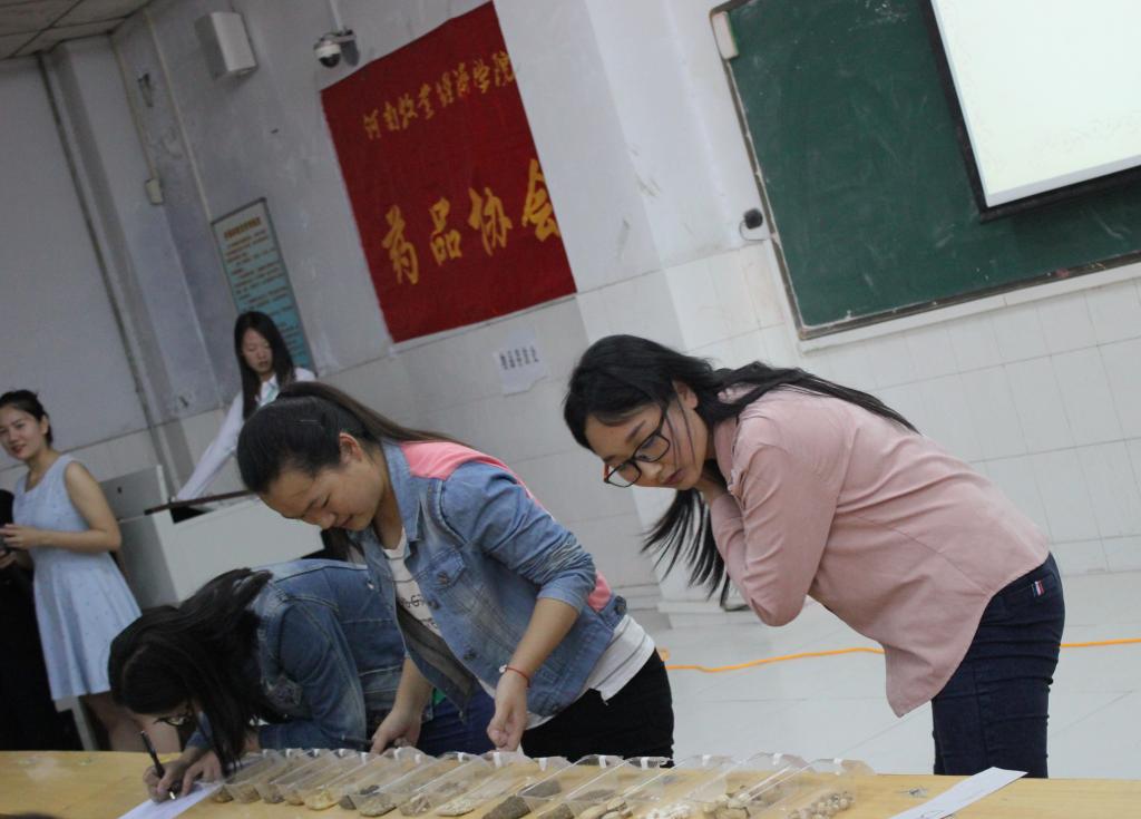 此次中药鉴别大赛吸引了来自不同专业不同年级的同学的参加,现场气氛严肃紧张,监考人员认真计时,考场秩序井然有条。比赛内容分为中药鉴别、选择题、知识对答和中药竞猜四个环节,主要就中药的归经、性味、功效等知识进行综合考察。首先是中药鉴别,现场随机给每个团队分发中药40种,在有效的时间里进行辨别,各队员使出浑身解数,思考各种方法,结合学过的中药知识做出最终判断。紧接着是选择题,参赛的6个团队轮流答题,各团队在为期两分钟比赛中认真思考,谨慎作答,现场同学也极积寻找答案,大家都在徜徉中药知识的海洋中。紧张有趣的知识对答环节,各团队的激烈抢答活跃了赛场气氛,将比赛推向高潮,赢得在座老师和同学们的阵阵掌声。在最后的中药竞猜环节,由两个队员配合竞猜中药名称,具有极高的准确率及默契度的回答再一次给同学们以震撼。比赛最后,由各位在座老师逐一进行总结,老师们对参赛团队在比赛中表现表现出来的扎实中药知识基础给予了高度评价,同时对药营专业的学生提出要积极主动学习中药知识,传承中国传统文化的要求。