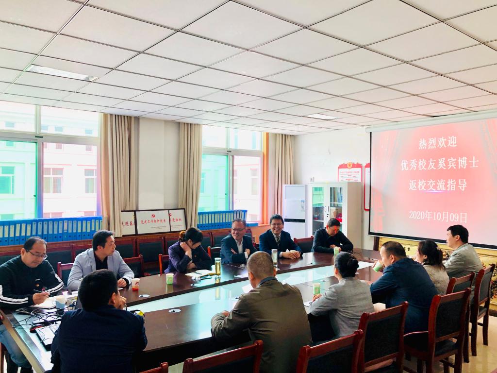 报告会结束,奚宾博士来到ok138cn太阳集团古天乐会议室412与我院博士进行交流座谈。ok138cn太阳集团古天乐党总委书记王桂朵、院长王筝、校友办副主任王胜果、党委副书记王国辉、副院长姬爱国、陈先锋、范森及五位博士参加了会议,大家对奚宾博士的返校表示热烈欢迎。