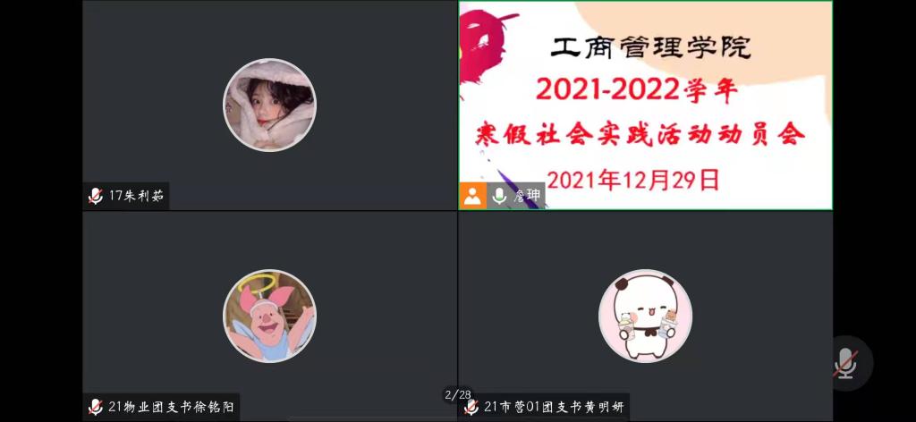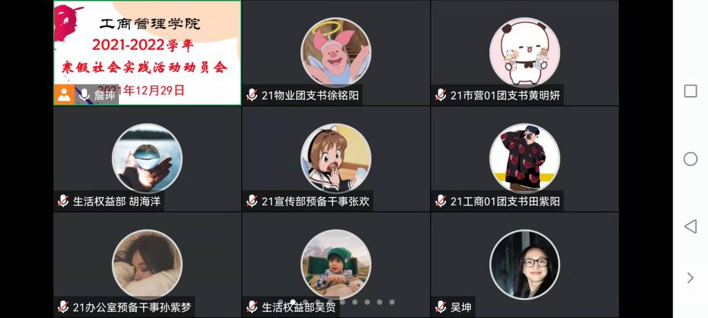为更好地开展2021-2022年度寒假社会实践活动工作,让同学们了解到在疫情背景下社会实践过程中应遵守的纪律与注意事项,12月29日晚,ok138cn太阳集团古天乐通过腾讯会议召开寒假社会实践动员大会。学院团委书记、各班班长、团支书与团学会各部门学生干部参加本次大会,各班辅导员同日上午在我院的学生工作例会上参加线下动员会。