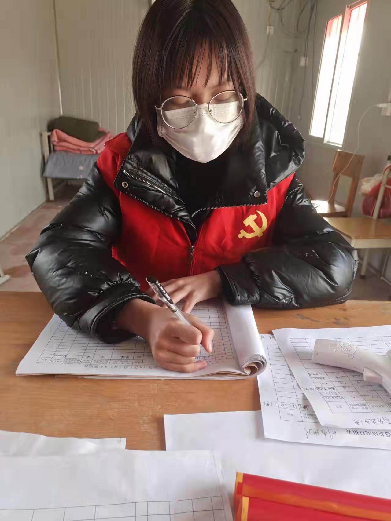 分工之后她就立刻上岗开始了防疫志愿服务,村里的村民都很配合,当时都到半夜了,但是村民们也都络绎不绝的来做核酸检测,到了快3点的时候才做完。每天早晨,天蒙蒙亮,其他人还在睡梦中,任莹莹同学已经早早的起了床去进行第二次核酸检测志愿服务,尽管天气很冷,她的手被冻的通红,脸也冰凉,但是她没有说放弃的,依旧一如既往地指导村里群众们有秩序的排好队,有条不紊的做核酸检测。她用自己的切实行动,诠释大学生的责任与担当。