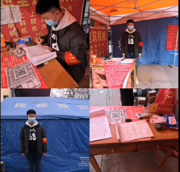2022年1月3日,19国商01白宇同学作为一名预备党员,在院团委的号召和身边无数榜样力量的感染下主动报名参加小区的志愿服务,负责工作检查并登记进出人员信息、测量体温、宣传防疫知识,为社区出入人员登记出入证,填写值班登记表等。
