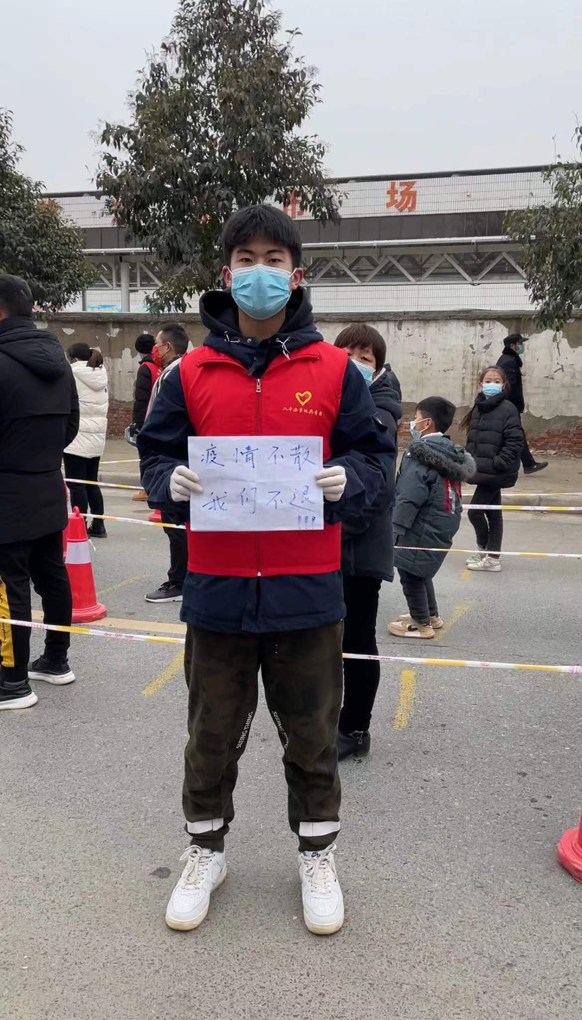 今年寒假回到家乡,我的家乡许昌暴发了疫情,在村内招募大学生志愿者时,我也积极响应,报名参加志愿防疫,成为为了一名防疫志愿者。在做志愿者这二十天,我参加的工作有帮助村民完成核酸检测、统计村内居民的基本信息、在村内进行宣传防疫知识、卡点站岗。20多天的志愿服务中,我体会到了防疫人员的辛苦和不易,尤其是在天气严寒的情况下,但我也感到高兴能为自己的家乡做一些小事,我相信在我们的共同努力下,防疫一定会胜利,我们一定能够穿过寒冬去拥抱温暖。
