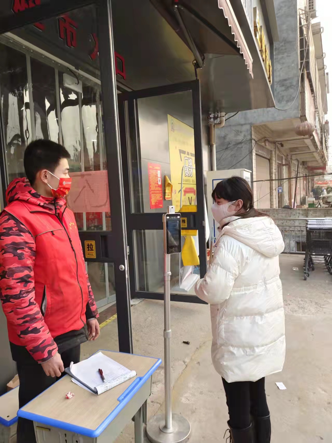 邓沂东,是21工程造价01班的一名学生,家住河南省南阳市卧龙区石桥镇,由于疫情原因放假比较早,我利用假期积极参加社会实践,在超市进行实践工作,随着疫情形势的严峻,当地政府积极采取措施,在所有公共场所设立疫情防控登记台。我便主动报名参加工作,每日早晨七点半我就穿上志愿者的衣服上岗,在公共场所进行消杀工作,并且为当地进入公共场所的居民进行体温测量和登记。二十天来,即使天气很冷,能为大家服务,为国家疫情防控尽一份力,我的心也是热的。我愿意用自己的微薄之力,为抗击疫情做出点滴贡献。