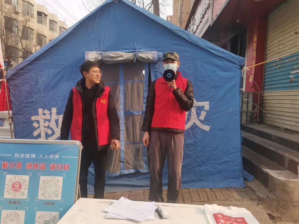 2022年1月,新冠疫情反复,家住河南南阳的路林翰同学积极参与疫情防控,向所在社区报到,前往当地疫情防控压力大的贸易市场站岗,进行志愿服务,仔细查看来往人员的健康码、行程码,给人们测量体温,做好人员信息登记,严格驻守疫情防控关卡。为减少人员的过多流动,路林翰同学根据进入人员的购买需求对其进行初步向导,来帮助他们更快地购买物品,减少在疫情防控区域内的停留时长。在大家的积极配合下,疫情防控顺利进行,路林翰同学为疫情防控积极贡献力量,帮助人们更快地恢复正常生活,彰显了当代青年人的责任与担当。