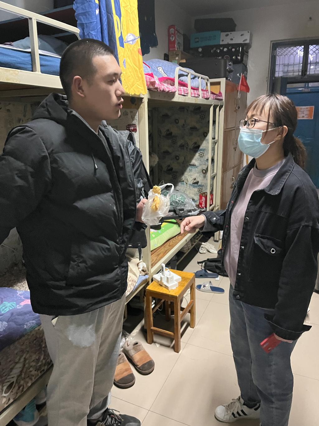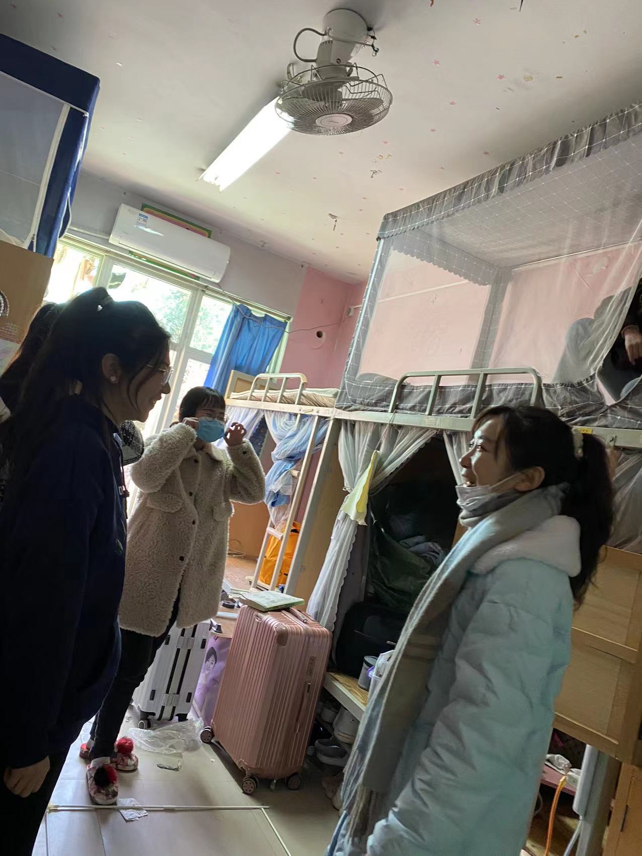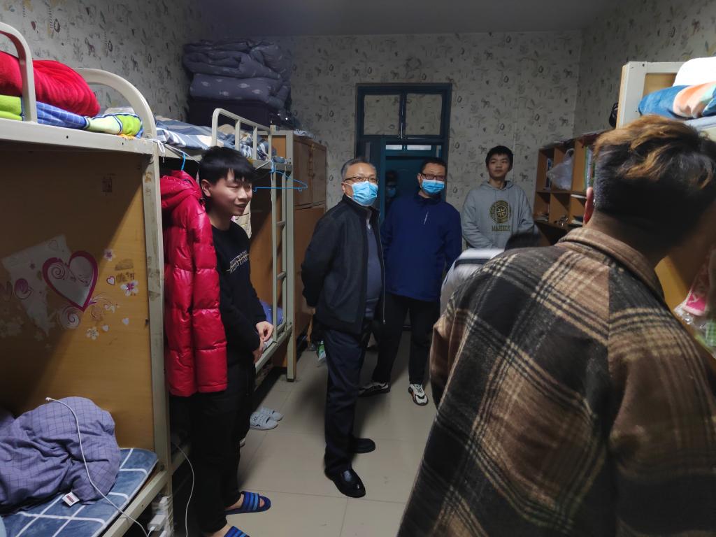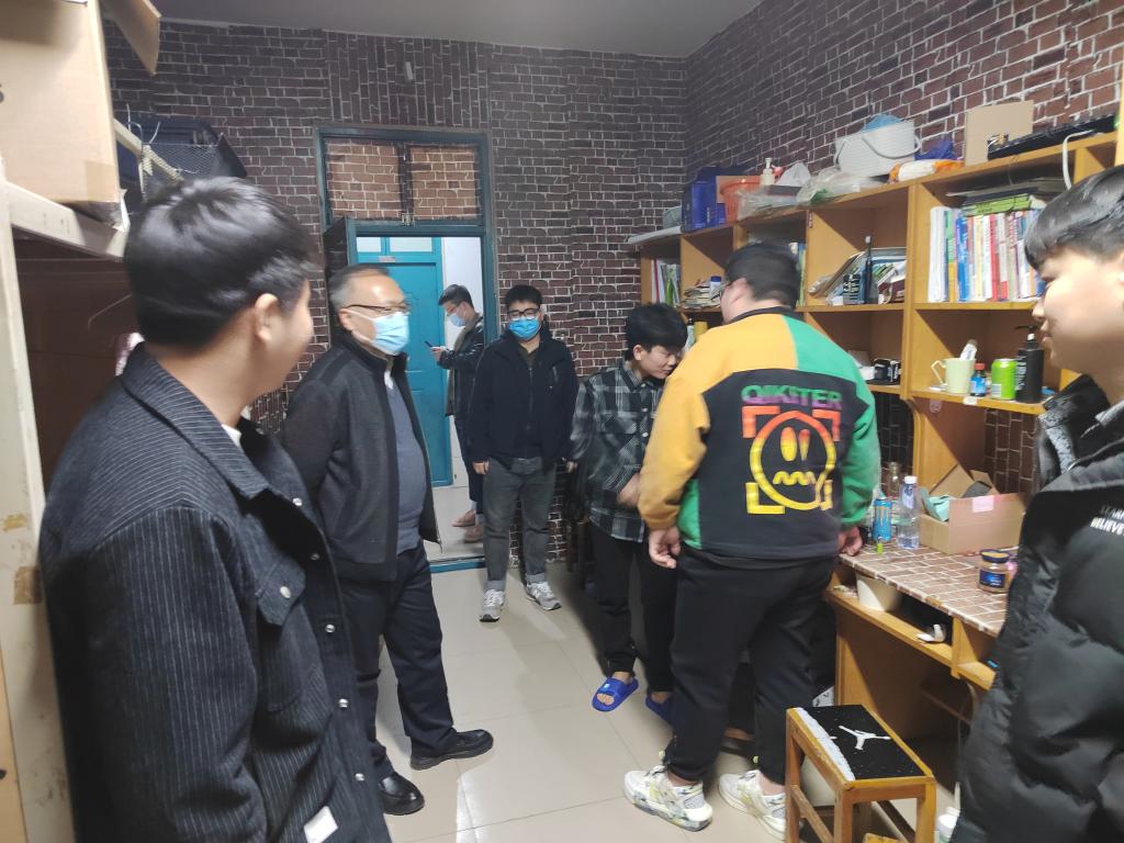 26日早上,院领导和学生辅导员早早在我院报到处集合,迎接新学期学生返校。学生返校后,进行入校检测,酒精消杀,健康和行程码展示,扫码检测,递交三单一书,扫码签到等等程序有条不紊,完美衔接,学生顺利进入宿舍,晾晒被褥,打扫卫生,迎接新的开始。226-27日,学院党委王筝书记带领全体学生辅导员和部分学生干部,走进学生公寓看望返校学生并检查宿舍安全工作。 王筝书记亲切询问学生假期学习生活、到校情况以及大四学生就业问题,提醒大家为新的学习生活提前做好准备。他对同学们提出希望:及时收心,回归学习,珍惜时光,刻苦学习,争当优秀;安排好生活,提高安全防范意识,严守学校规章制度;养成良好习惯,做好疫情防控工作,加强宿舍卫生的打扫,勤开窗通风,注意饮食健康,少叫外卖,预防春季传染病等。各位辅导员对宿舍安全隐患进行详查,同时检查学生返校情况,及时登记未返校学生,查明原因,督促学生尽快返校。