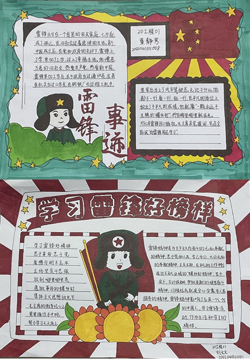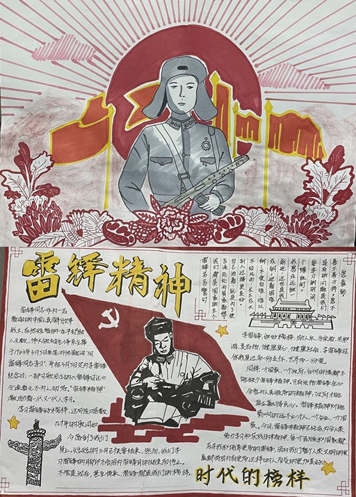 活动过程中,全院学生积极响应,将自己对雷锋精神的理解和感悟通过纸笔描绘出来,以丰富多彩、图文并茂的形式在绘画作品和手抄报上展示了弘扬和学习雷锋精神等宣传内容,以文字和色彩渲染红色基因,把对雷锋同志的崇敬与怀念之情深深地融入自己的作品中,用新时代青年的方式赞颂他的“钉子精神”,展现他的光辉形象,歌颂他“全心全意为人民服务”的高尚品质。