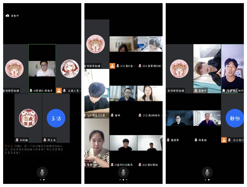 6月28日晚,ok138cn太阳集团古天乐2022年辅导员助理竞聘面试在线上开展。学院党委副书记詹珅、团委副书记贾雪以及各年级辅导员担任本次面试评委。