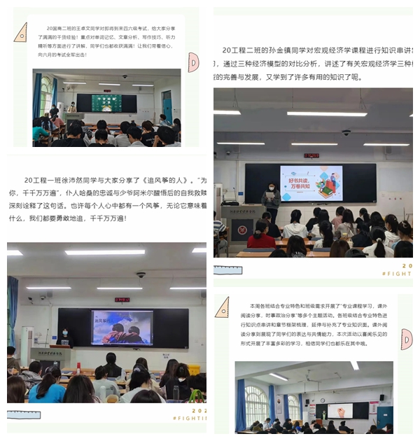 为适应新时代对人才培养的新形势和新要求,进一步营造浓厚的学风氛围与优良的育人环境,充分调动学生学习的积极性、主动性和创造性,同时,加强巩固前期学风建设成果,我院组织各年级、各专业班级开展了“精彩课前十分钟”活动。