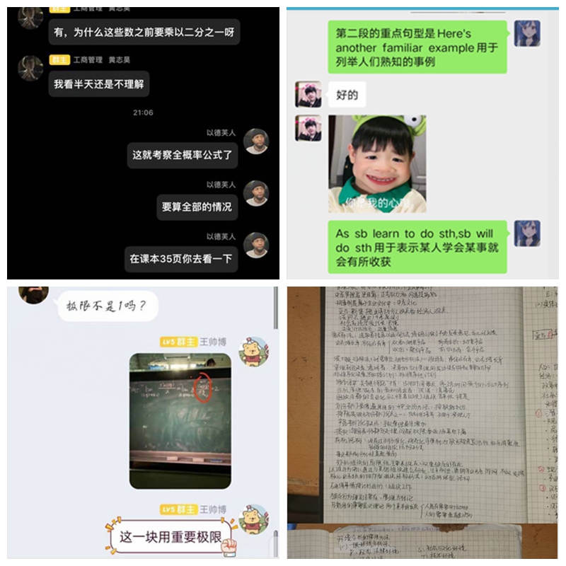 本次活动结合当前防疫要求,主要为线上打卡,形式多样。打卡内容涉及英语单词积累,疑难问题讲解,课堂笔记分享以及学习互勉监督等多个方面。活动期间,面对疑难问题,小组成员互帮互助,集思广益;在词汇积累上,大家互相鼓励,共同进步。此次活动中,共有八十一个小组积极报名,踊跃参与其中。 “三人行,必有我师”,为期五天的打卡活动虽已结束,但同学们求知的脚步仍未停止。