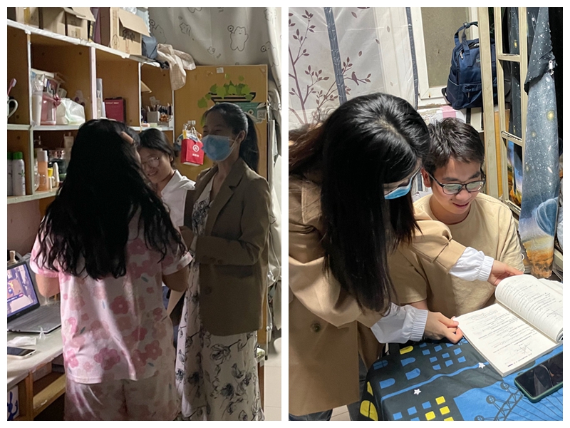 入住宿舍后,周玉洁老师密切了解学生生活情况,时刻关注学生身心健康,定期摸排学生思想状况,准时报送学生信息台账,做到“一个不漏”、“一个不错”,确保各项工作“不掉线”。隔离不隔心,几乎每晚,她都穿梭于各个学生宿舍之间,倾听学生的所思所想,用细心、耐心和爱心为学生们排忧解难,舒缓情绪。