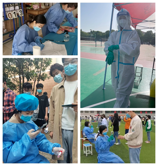 为守好防护“第一关”,周玉洁老师与同学们在学校同吃同住,每天一睁眼,她就会提醒学生:“同学们不要忘记每日健康打卡,也许这只是一件微小的事情,但却是大家为疫情防控所贡献的重要力量。”面对少数同学对健康打卡的不理解与遗忘,她每次都会在群里耐心叮嘱与解释。在核酸检测现场,大家也总能看到她的身影。不论是炎热的高温天,还是阴冷的下雨天,她都坚守在核酸检测一线,提前对核酸现场进行布置,在规定的时间中进行扫码工作,给医护人员提供帮助。同时,她也加入到学校指挥部的转运登记工作中,为学校的疫情防控工作贡献自己的微薄力量。