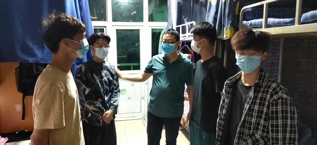 自5月3日校园实施全封闭管理以来,詹珅是连夜入住到学校的第一批辅导员老师。他顾不得照顾年幼的孩子,在英才校区家属院封控管理的情况下,紧急为家人购置好急需必备的生活物资后,把年幼的孩子托付给爱人,第一时间入住学生宿舍,与学生们同吃同住。面对突发的疫情,学生中间难免会出现焦虑的情绪,因为他的第一时间入住,极大安抚了学生的情绪。通过面谈和电话等形式对学生和隔离学生进行疏导,解决学生的思想压力,克服对隔离的恐惧心情,让大家相信党,相信政府,相信学校,疫情无情人有情,做好自我防护,积极配合疫情防控工作。