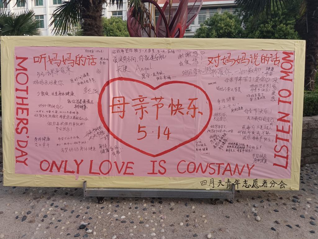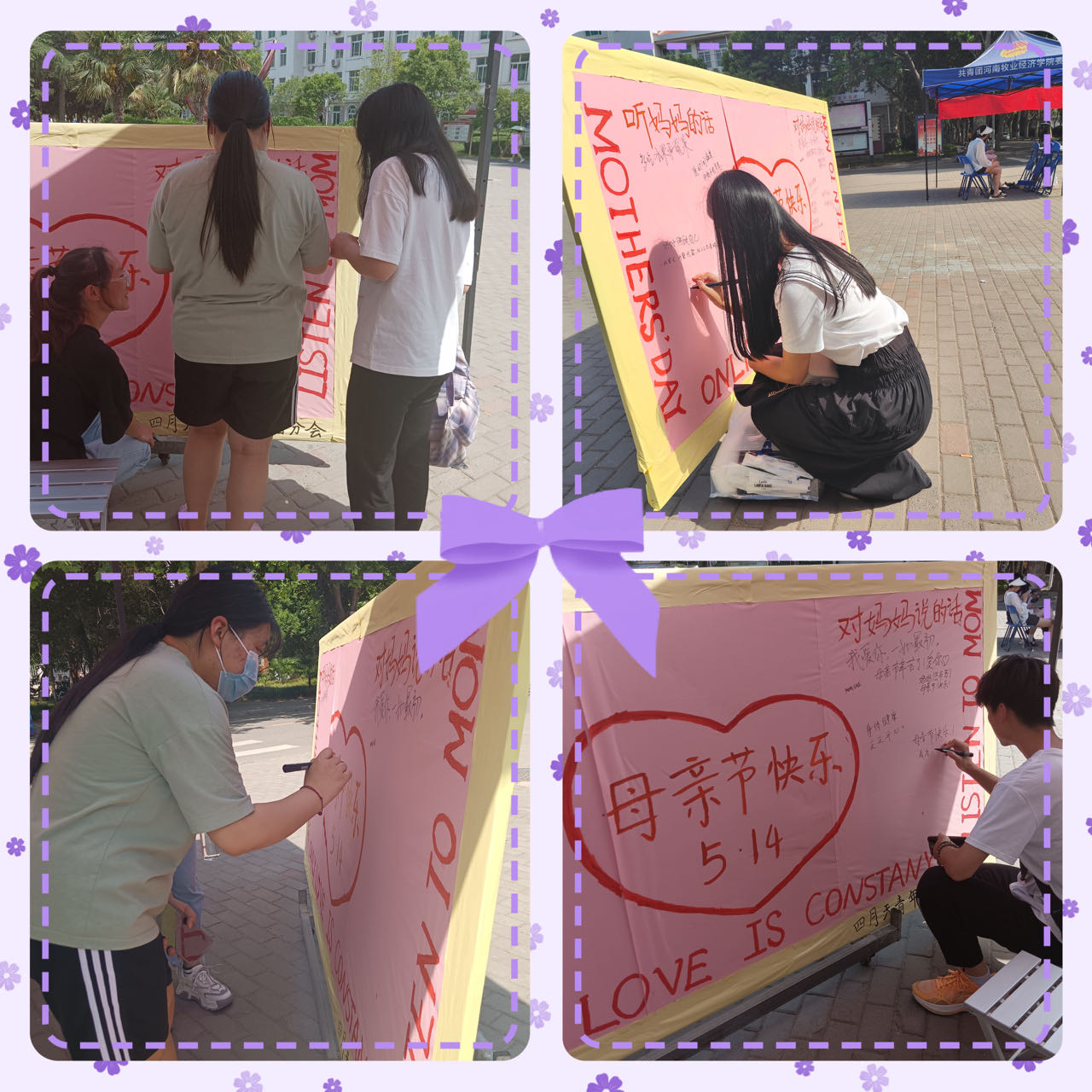 曾几何时,妈妈是无所不能的代名词,是最温暖的避风港湾,而等时光荏苒,学生们长大才知原来有些事情解决的也不是那么轻松,是妈妈在为我们承担,如今她两鬓渐渐沾染风霜,可她眼中对我们的爱却一如往昔,未曾改变。相信学生们的祝福可以转化为实质行动,送出母亲节的最好礼物,在同学们的积极参与下,本次活动圆满结束。