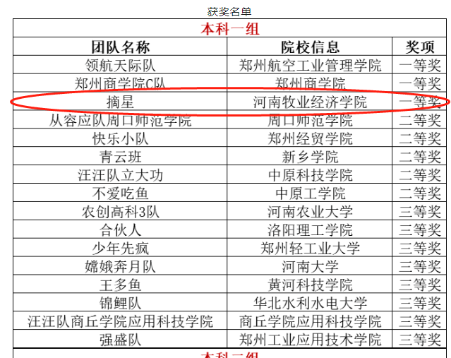 本次比赛分为两个赛道进行,一个是创业营销赛项,由河南大学承办,我校三支参赛团队“摘星”、“碎星”、“破晓”,分别拿下一个一等奖、两个二等奖;另一个是创业综合模拟赛项,由河南职业技术学院承办,我校三支参赛团队“擎云”、“霍格沃茨魔法师”、“花园宝宝”均获得二等奖。