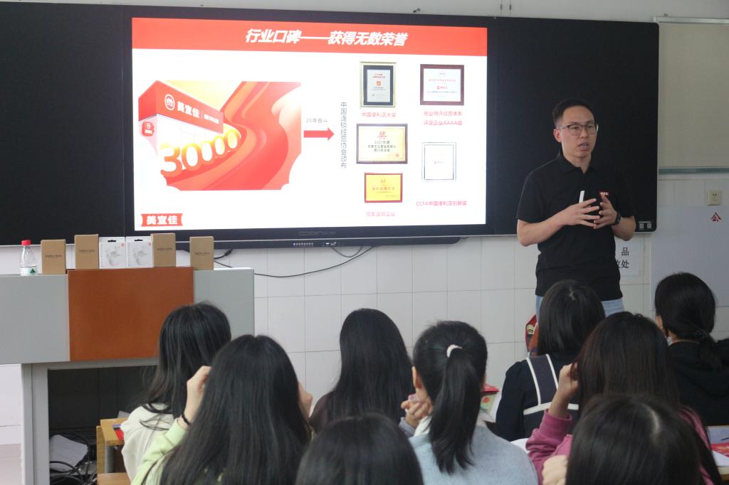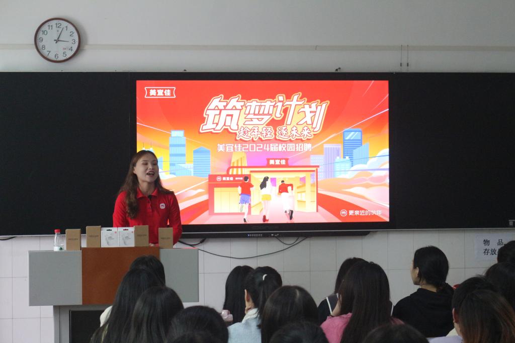 首先,人事行政部、人力资源专员李梦娟暖心开场,通过2分钟的现场抽奖活动调动在场学生的积极性。然后,美宜佳控股有限公司人事行政部、人才发展课课长段佳节,通过PPT演示与面对面交流的方式,从选对行业重要、选对公司很重要、我们能给你什么三个方面向同学们介绍了公司概况、公司的优势、公司生产运行机制、发展愿景、人才发展与需求以及招聘信息等相关内容。同时,参会的同学们也就自己所关心的专业对口、公司所需求的人才素质、公司发展平台与机会、薪资福利待遇、工作环境等问题向公司宣讲人提出疑问,宣讲人段佳节耐心讲解,有针对性地为同学们答疑解惑,让大家对美宜佳有更深层次的了解,消除顾虑,放心面试。他提醒同学们认真选择良好的发展平台,同时鼓励各位同学积极投递简历,期待有更多的优秀青年来到美宜佳控股有限公司挥洒青春的汗水,一起进步。最后,美宜佳现场共收到100多份面试简历,面试过程中同学们积极展现自身闪光点,创优争先,努力争取宝贵的offer。
