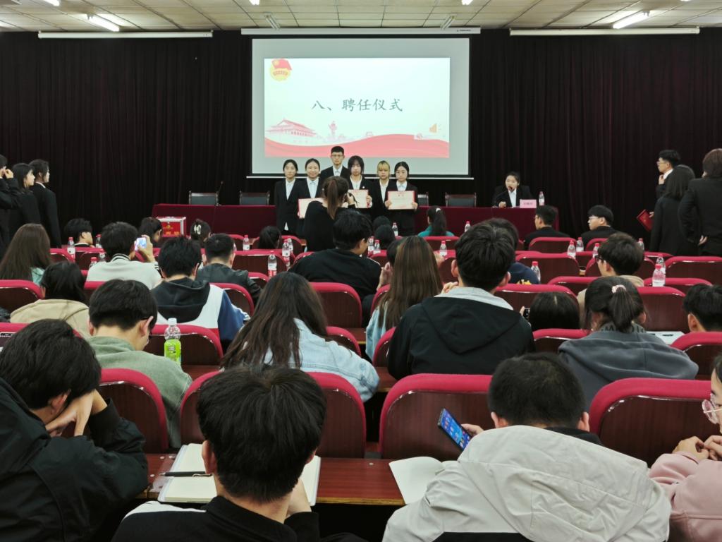 随后,席亚芳、周玉洁依次宣读第五届团委学生会成员名单,并由第四届团学干部为新当选团学干部颁发聘书。第五届团学会主席团成员时银达作为代表发言并带领新一届团学干部宣誓,全体团学会成员郑重承诺,在任职期间认真履行干部职责,严格要求自己,不忘初心,踏实作为,勇毅前行,不负青春。