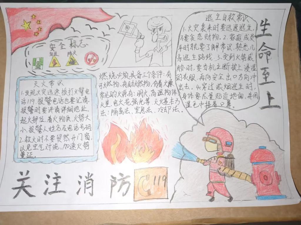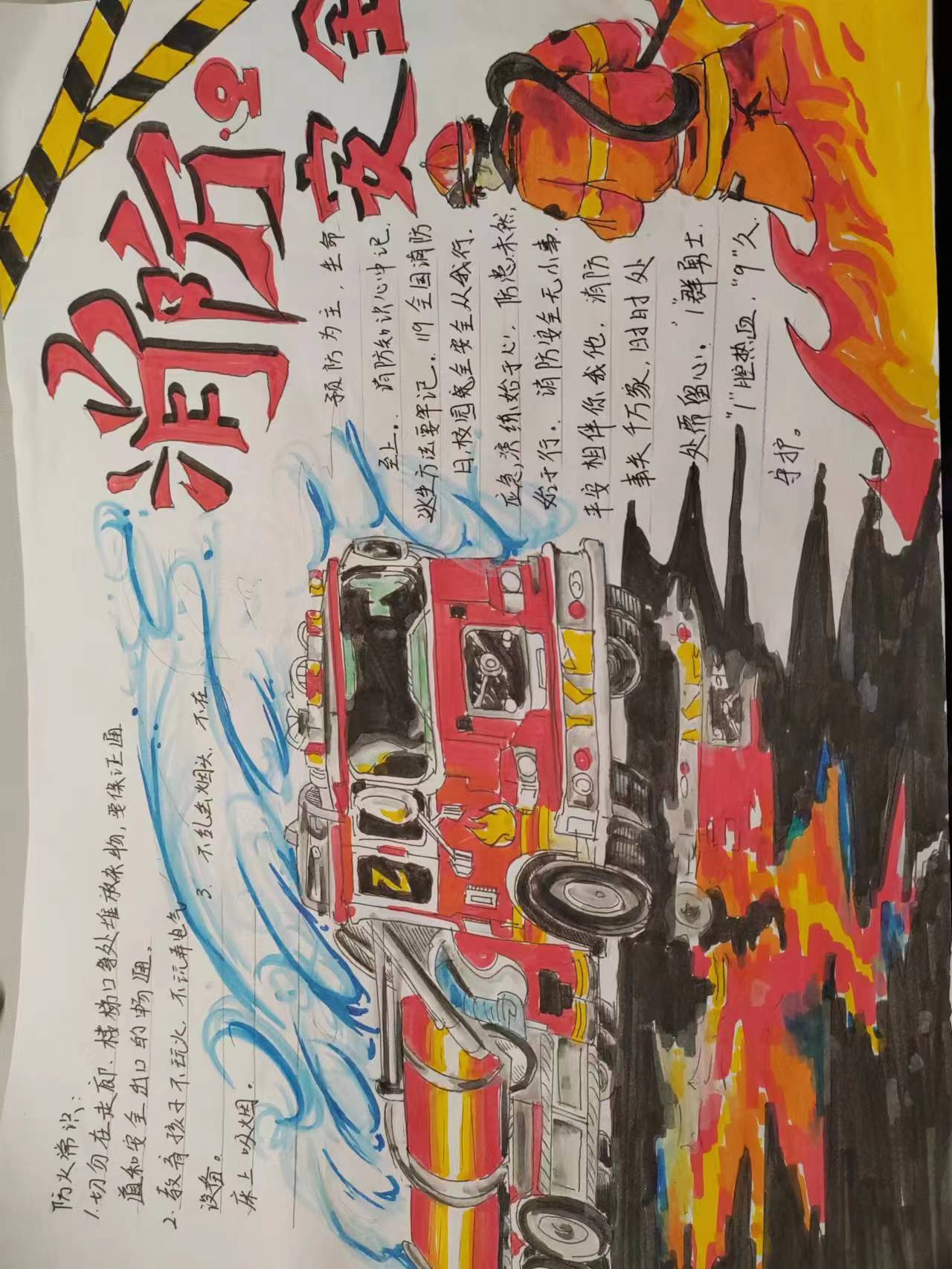 活动通过制作手抄报的方式进行,充分发挥学生想象能力,吸引众多学生积极参加。周二发布活动通知,同学们自主创作有关消防内容的手抄报,周四下午四点统一收取作品,并展示了同学们各式各样的手抄报。这些手抄报不仅能够宣传消防安全,提高同学们对校园消防安全的关注度促进同学之间的交流,而且增强了同学们在校园消防安全工作中的主体意识和责任意识,对构建安全校园,营造校内学习消防安全知识的氛围具有一定促进作用。