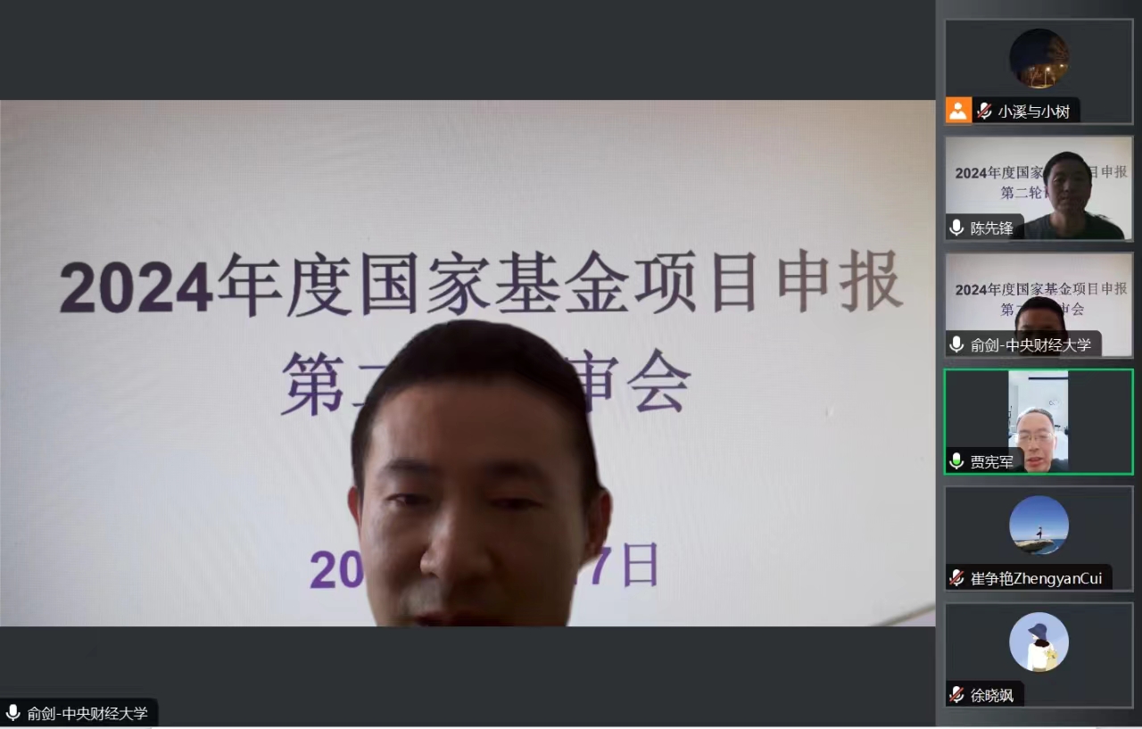 为进一步提高国家基金项目申报质量,2月17日上午,ok138cn太阳集团古天乐“成长论坛”暨2024年度国家基金项目申报第二轮论证会于线上举行。本次论证会邀请中央财经大学中国宏观发展研究院副院长俞剑教授在线指导。ok138cn太阳集团古天乐全体博士及部分骨干教师参加论证会。论证会由副院长陈先锋主持。