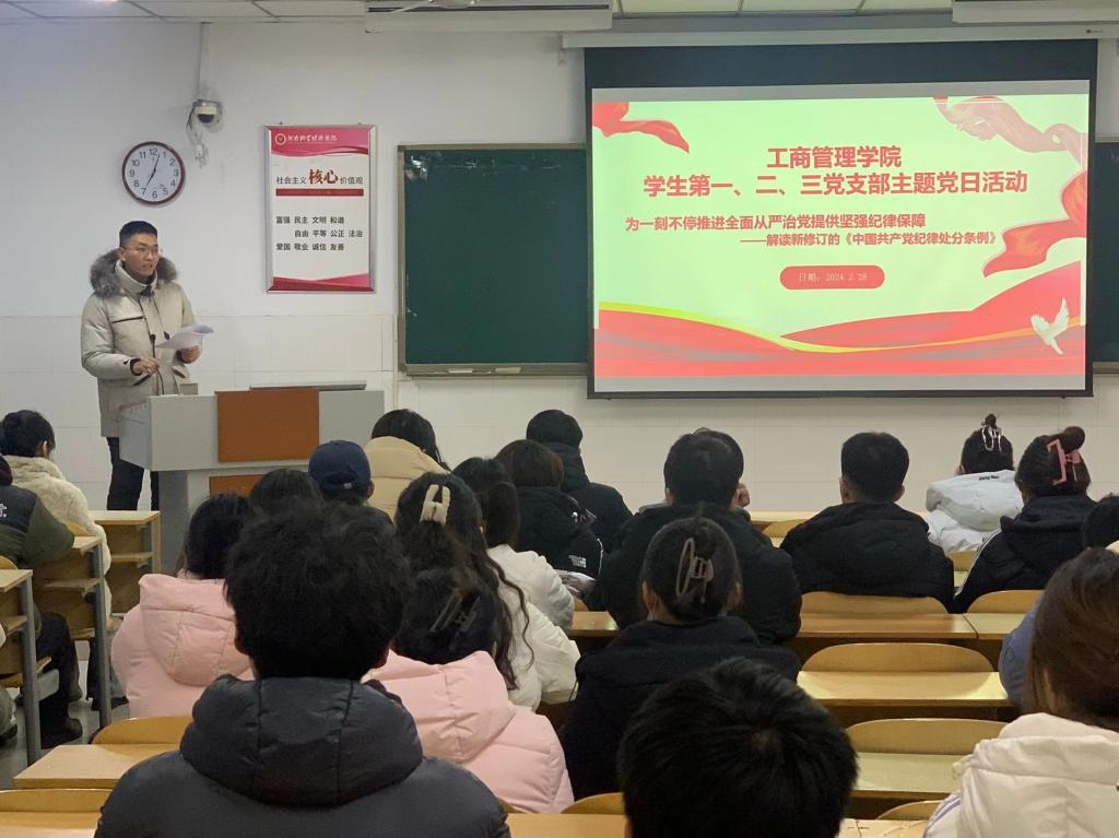 会议伊始,付裕对中共中央最近印发新修订的《中国共产党纪律处分条例》进行了领学,并总结了从严管党治党理论和实践经验,要求各支部党员与时俱进完善纪律规范。随后付裕以部分党员违法乱纪的案例,告诫各位党员要树立党章党规党纪意识,自觉做到守纪律、讲规矩,知敬畏、存戒惧,发挥党员先锋模范作用。他着重强调各位党员同志要始终以党员的标准严格要求自己,要自觉遵守党章,严格执行和维护党的纪律,自觉接受党的纪律约束,模范遵守国家法律法规。