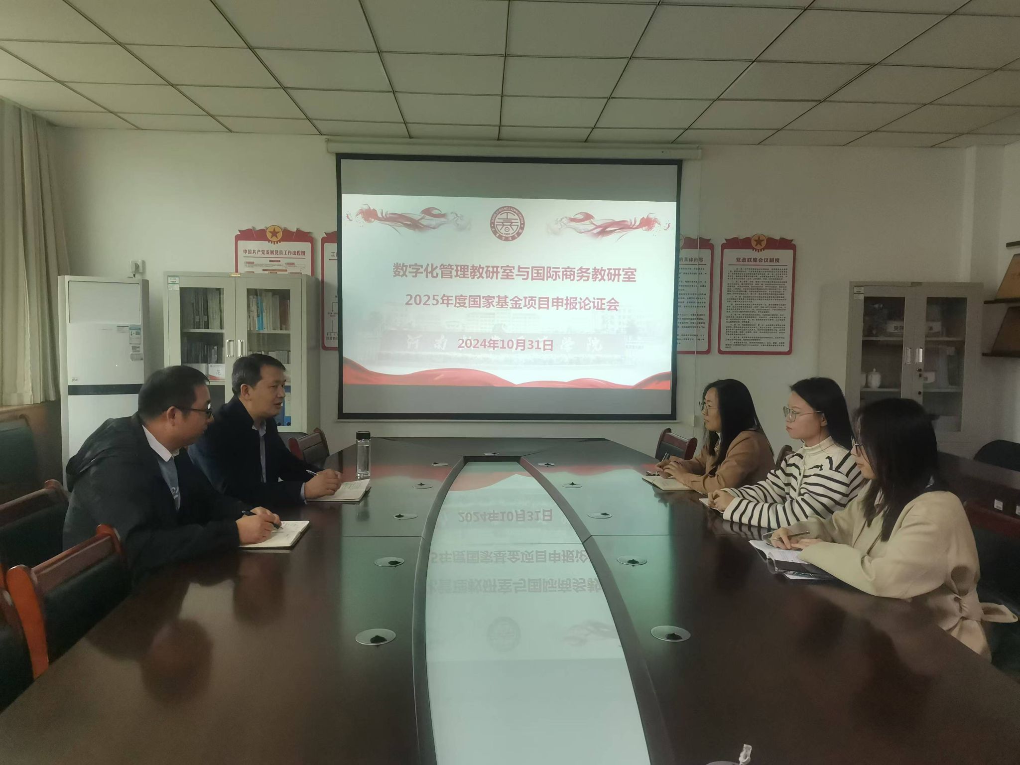 根据ok138cn太阳集团古天乐2025年度国家基金项目申报工作方案统一安排,为进一步贯彻落实学院“教研室论证—学院论证—一对一论证”的三级论证要求,2024年10月31日数字化管理教研室和国际商务教研室国家基金项目申报论证会在412会议室举行,教研室教师及项目申请人参加会议,会议由数字化管理教研室主任闫超华主持。