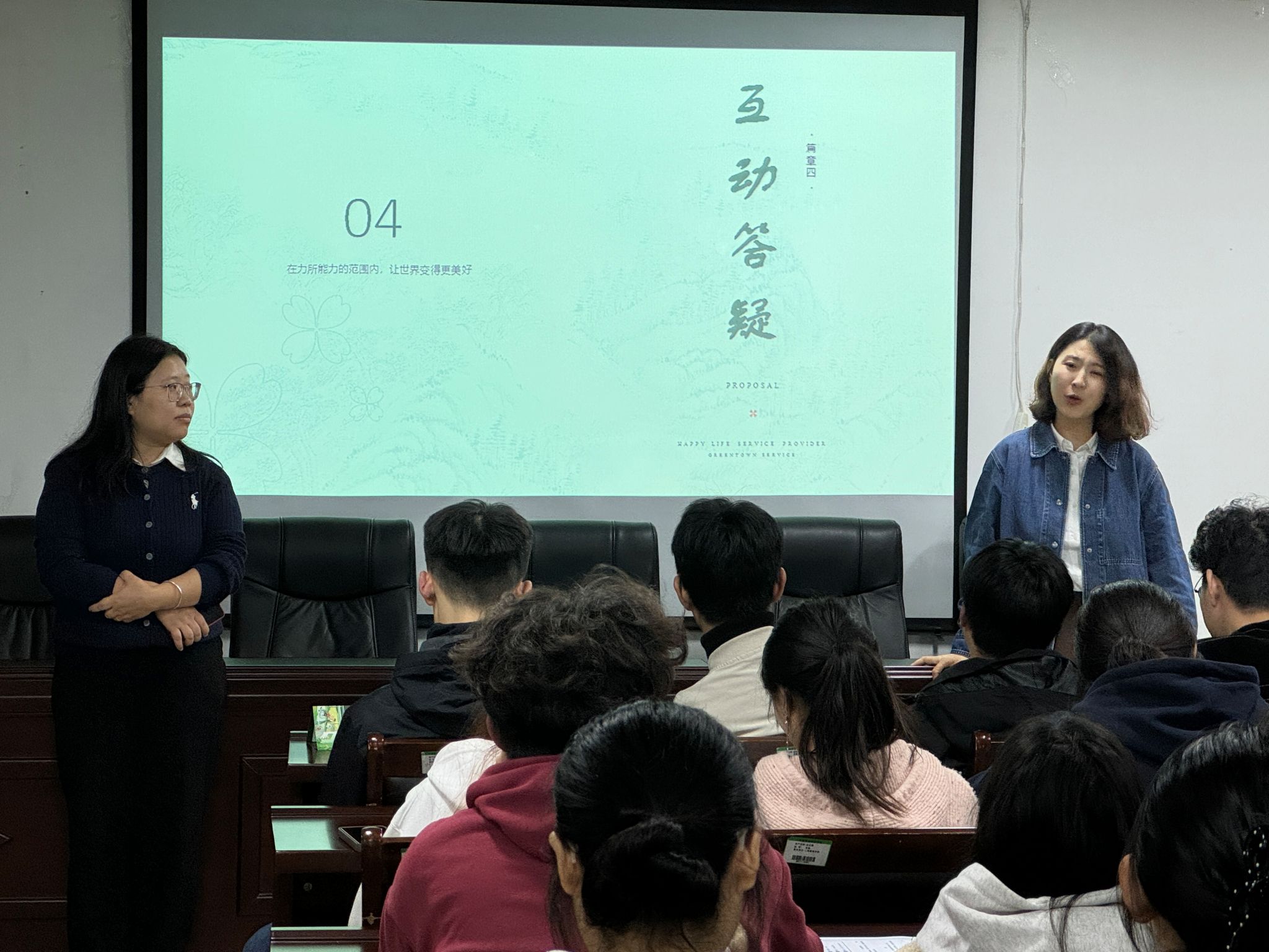 宣讲会伊始,李贞经理与学生们进行了面对面的交流。她详细介绍了公司的发展历程、业务板块、企业文化及社区康养服务,并分享了公司在人才培养和职业发展方面的独特优势。李贞经理表示,公司一直致力于为员工提供广阔的职业发展空间和具有竞争力的福利待遇,希望通过此次宣讲会吸引更多优秀人才加入。宣讲过程中,公司通过播放宣传片、PPT展示等形式,向学生们全方位展示了公司的工作环境、项目案例和员工风采。特别是公司的高管直聘环节,更是吸引了众多学生的目光。这一环节不仅为学生们提供了与企业经理面对面交流的机会,还为他们未来的职业发展提供了更多的可能性。宣讲会还特别设置了现场面试环节,学生们可以立即展示自己的能力和才华,争取心仪的岗位。此外,公司还为到场的每位学生准备了精美的礼品,以表达对他们的热情欢迎和诚挚感谢。会后,有近30名同学递交了个人简历,有意向加入企业共同发展。