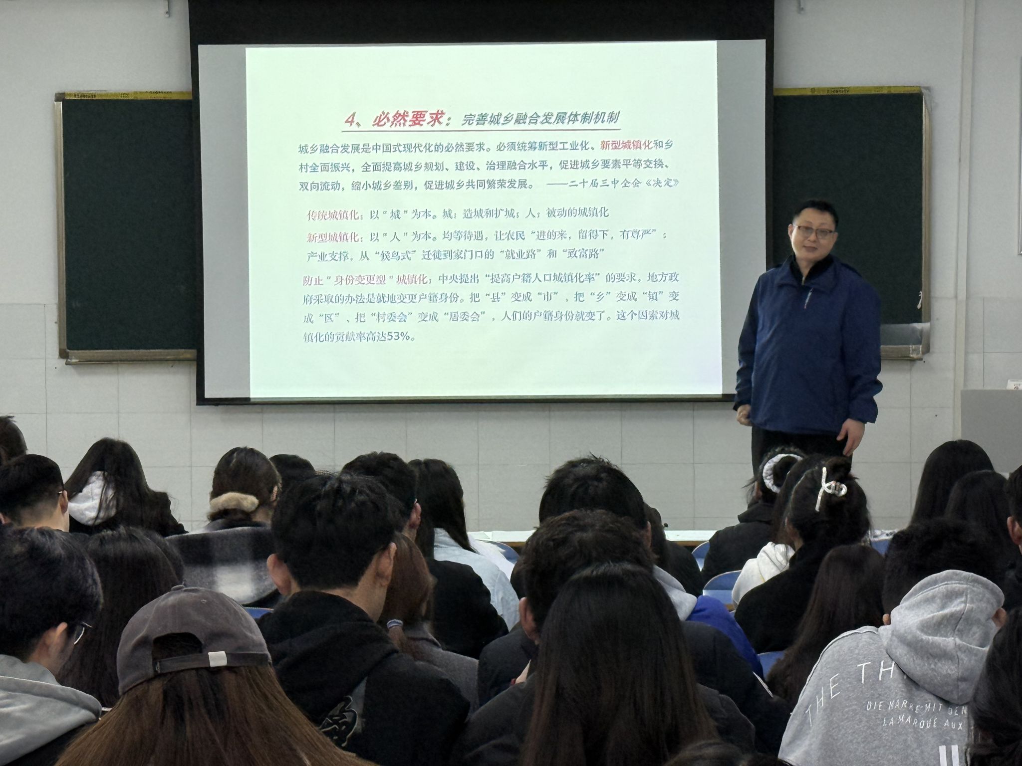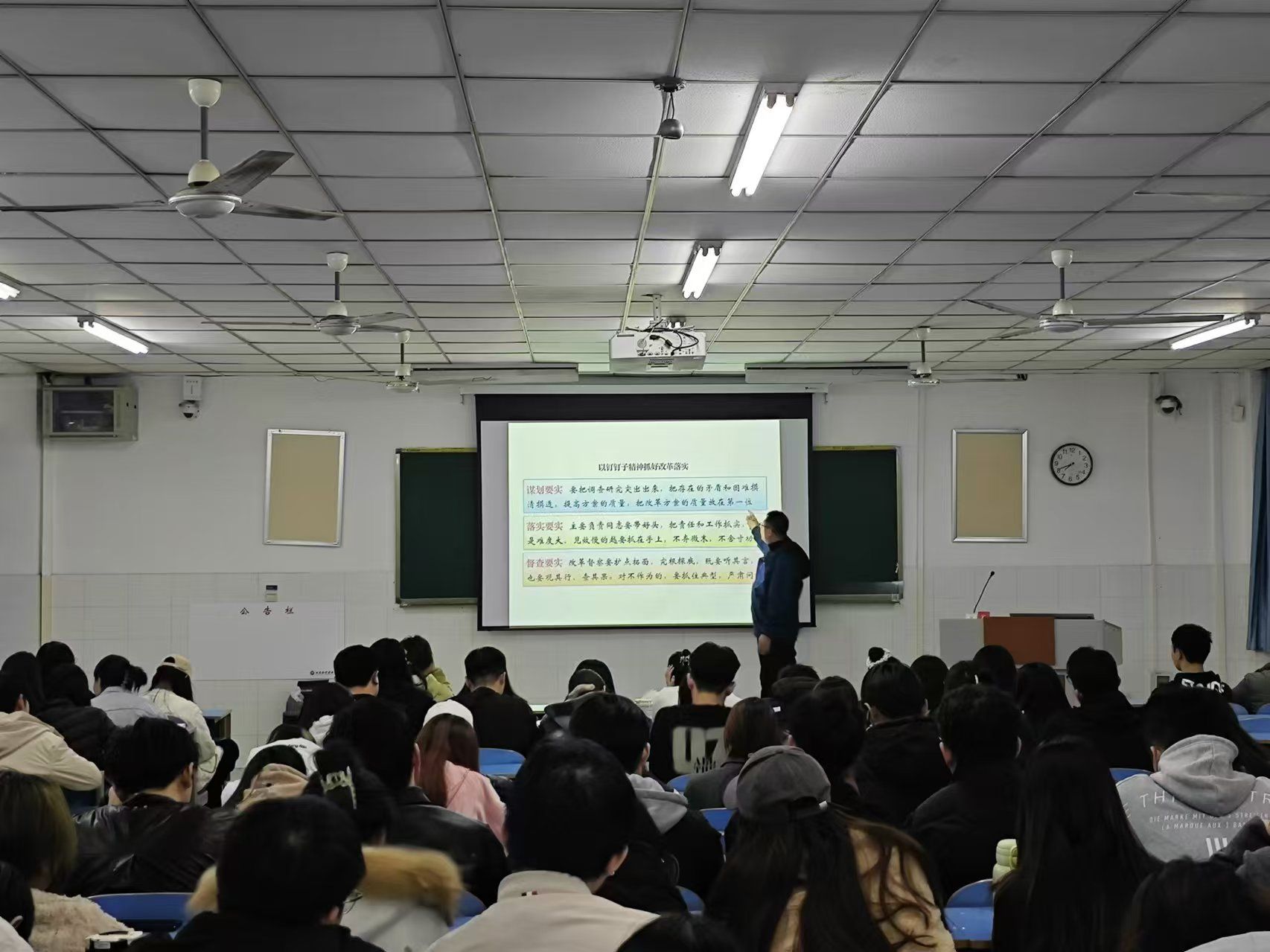 最后,詹珅告诫同学们,学习好贯彻好党的二十届三中全会精神是当前和今后一个时期全党全国的一项重大政治任务。我院全体同学要把思想和行动统一到习近平总书记重要讲话精神和党中央决策部署上来,要深入学习领会全会精神,深刻领会和把握进一步全面深化改革的主题、重大原则、重大举措、根本保证,增强推进改革的思想自觉。他希望同学们要在日常学习生活中要坚持问题导向,勇于创新实践,以钉钉子精神抓好改革落实,抓好校党委、学工部以及我院的各项工作部署,对困难问题要盯着抓、反复抓,直到抓出成效,切实推动我校和学院学风建设、校园文化、意识形态、校园安全建设等各项工作顺利开展。