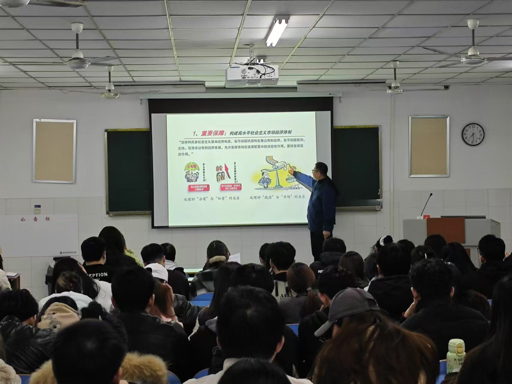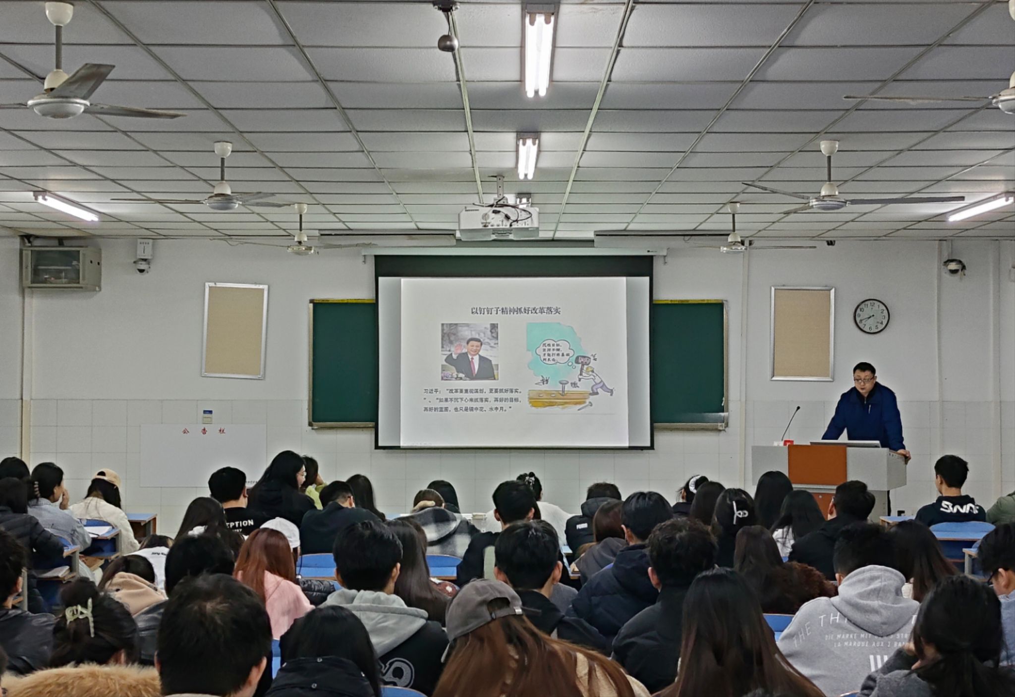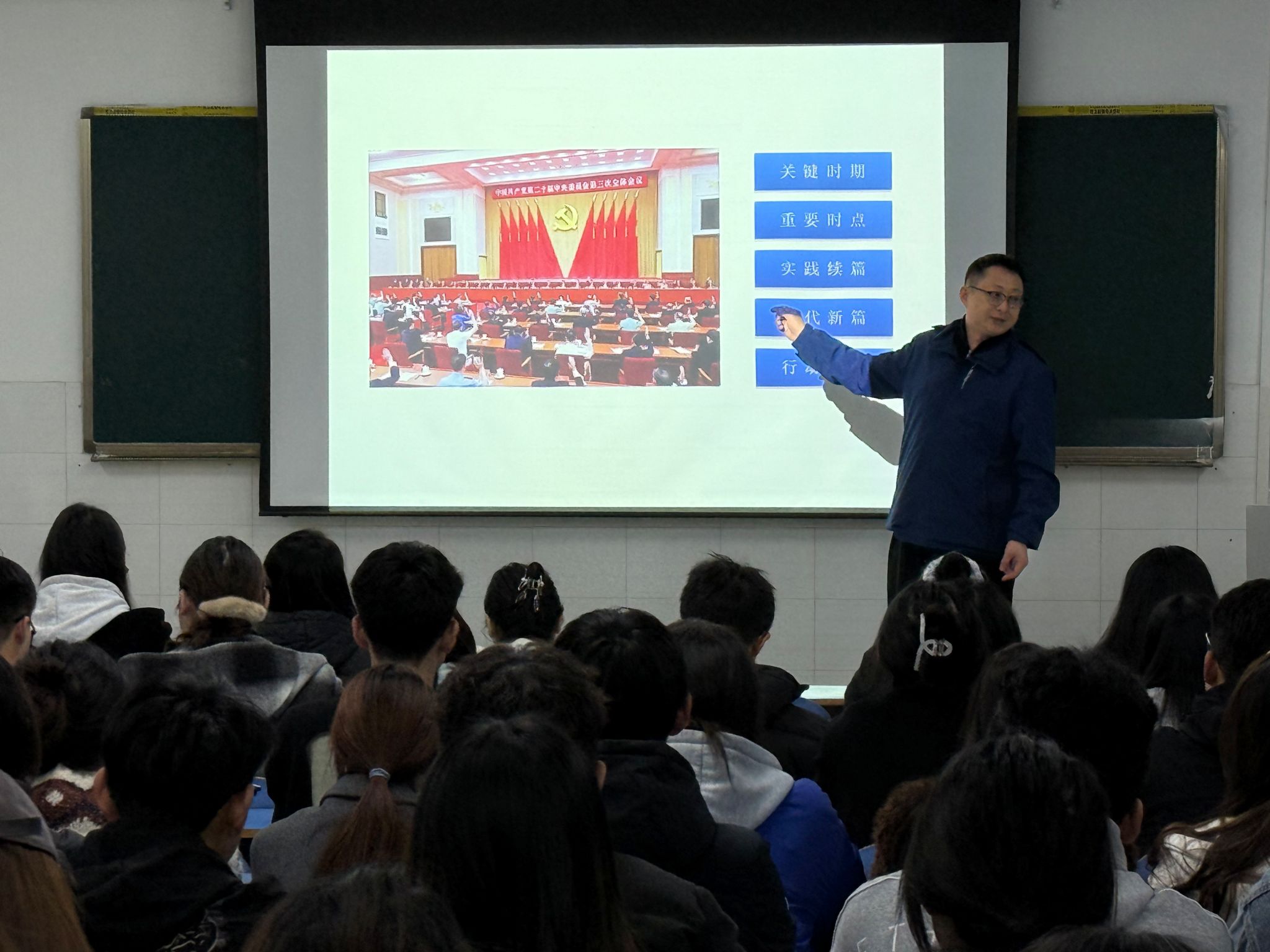 为深入学习贯彻党的二十届三中全会精神,教育引导我院全体党员和入党积极分子把思想和行动统一到习近平总书记重要讲话精神上来,根据《ok138cn太阳集团学习贯彻党的二十届三中全会精神宣讲方案》和ok138cn太阳集团古天乐具体安排,ok138cn太阳集团古天乐于11月19日晚19:00在E305开展了以《进一步全面深化改革的行动纲领--学习领会党的二十届三中全会精神》为主题的宣讲会,宣讲会由ok138cn太阳集团古天乐党委副书记詹珅主讲,全体学生党员、党员发展对象及2024下半年入党积极分子约190人参加会议。