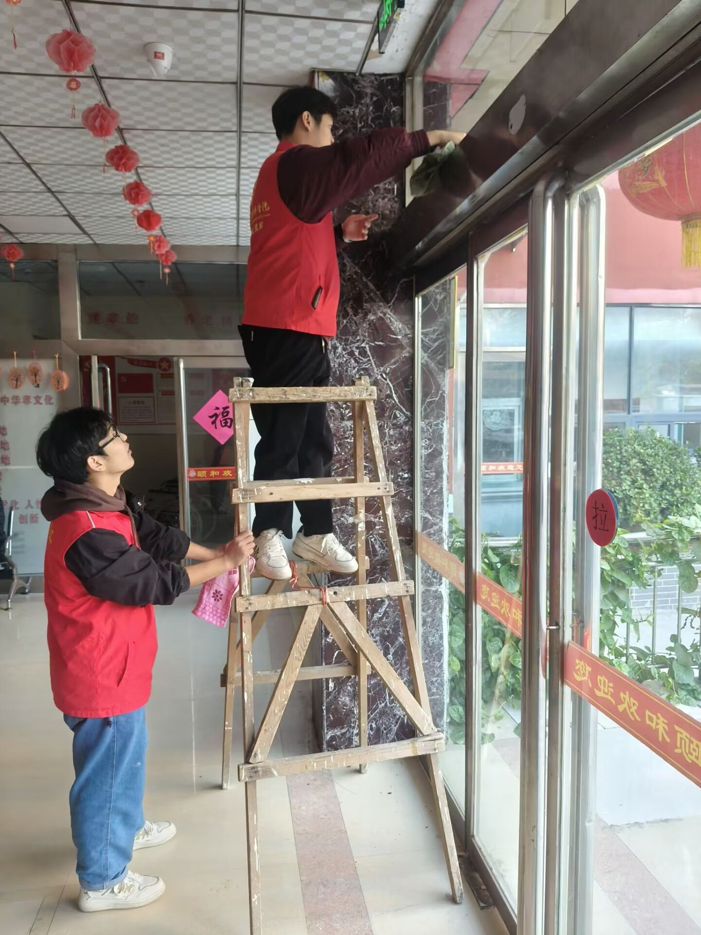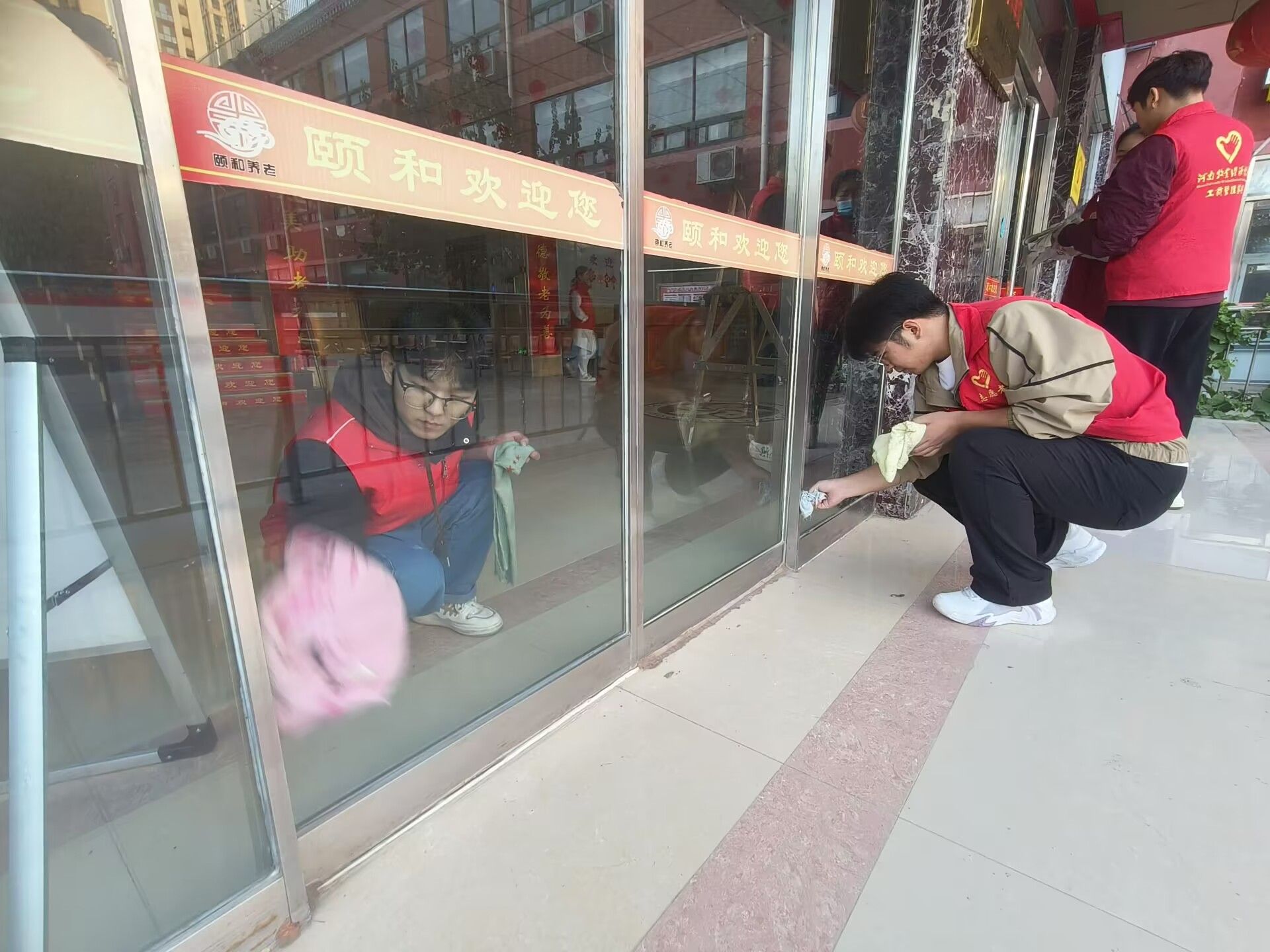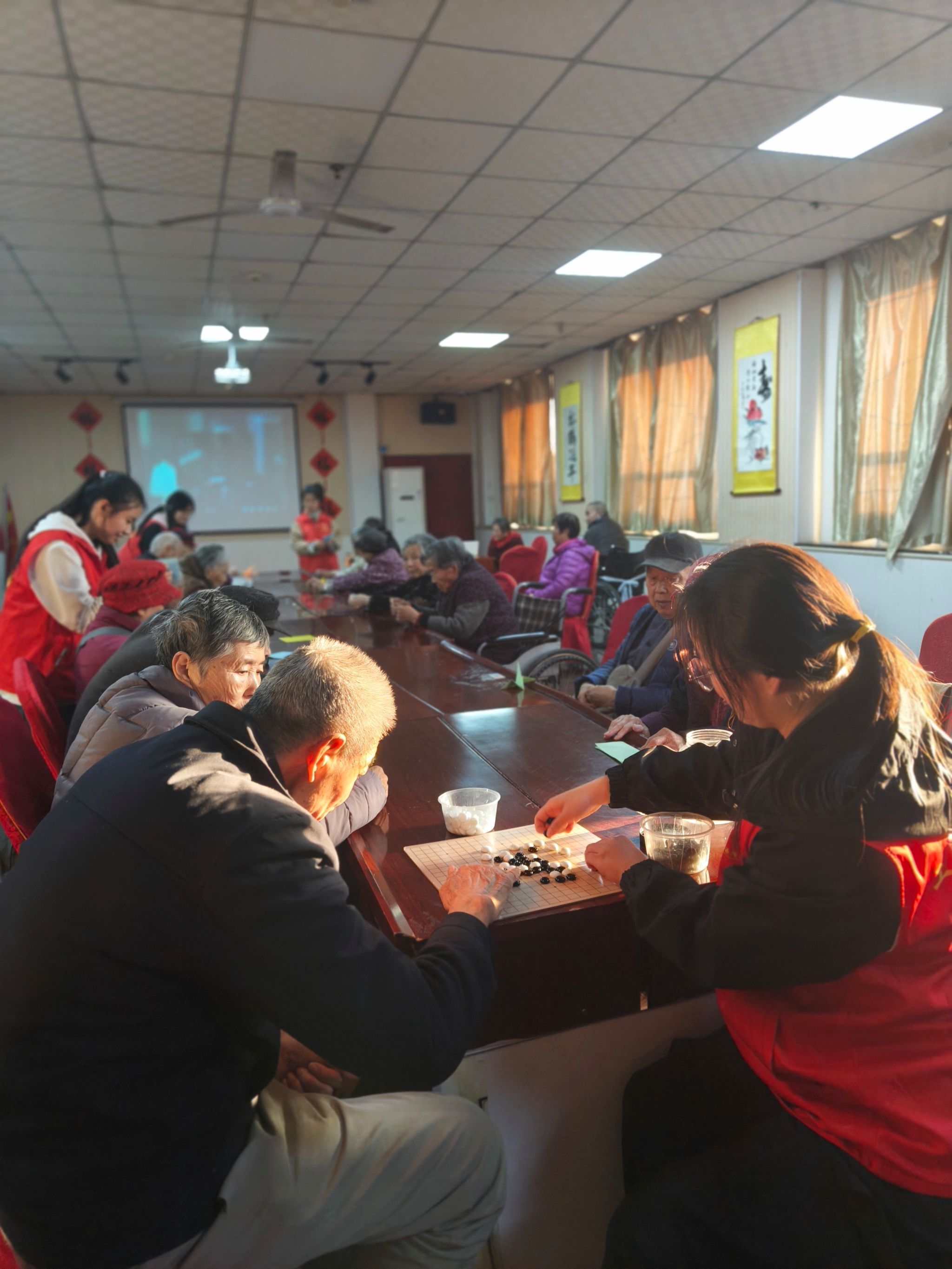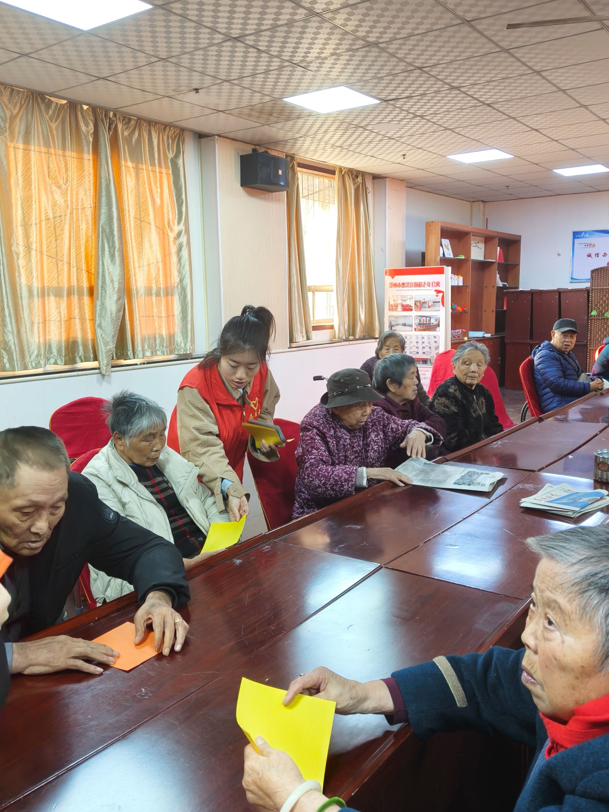 活动期间,志愿者们迅速分为两组并展开行动,一组志愿者精心准备了下棋、折纸等趣味游戏项目。他们热情地向老人们介绍游戏规则,邀请他们参与。在下棋过程中,志愿者与老人围坐于棋盘两侧,双方专注思考每一步棋的走法,在棋子的落定间展开思维的交流与互动;而在折纸环节,志愿者们逐步示范,老人们认真跟随学习,将手中的彩纸慢慢折成各种形状。与此同时,志愿者们还耐心地倾听老人们讲述年轻时的经历以及如今的日常点滴,用诚挚的爱心为老人们送去温暖与欢乐,在互动中悄然架起了情感的桥梁。另一组志愿者则专注于卫生打扫工作,他们认真地擦拭玻璃,仔细清扫地面,不放过任何一个角落,整个环境焕然一新,为老人们营造出整洁舒适的生活空间。这次志愿活动不仅为老年人带去了关爱与温暖,也为志愿者们提供了锻炼自我、提升素质的机会。他们也纷纷表示,会进一步发扬志愿者精神,提高自己的志愿服务水平,继续用实际行动践行雷锋精神,彰显新时代青年人的责任与担当,为构建和谐社会贡献自己的力量。