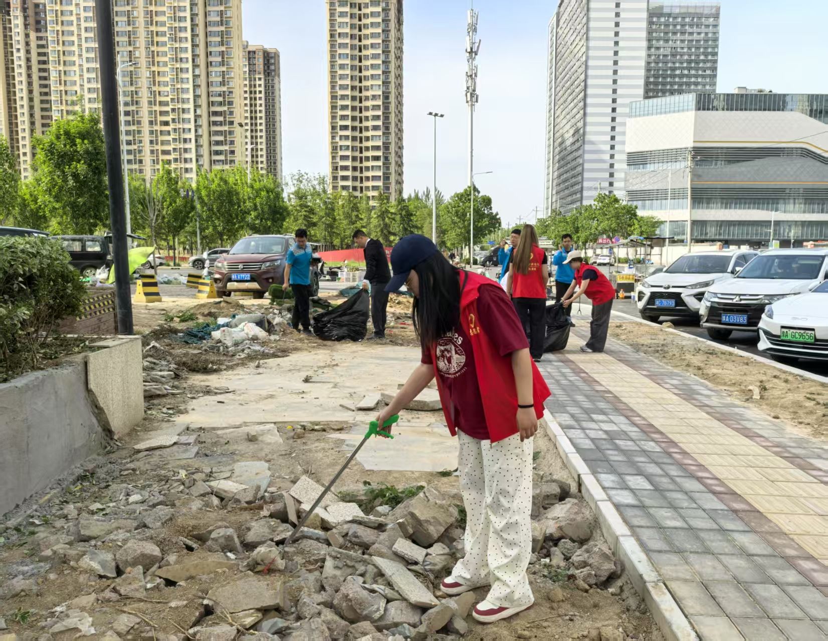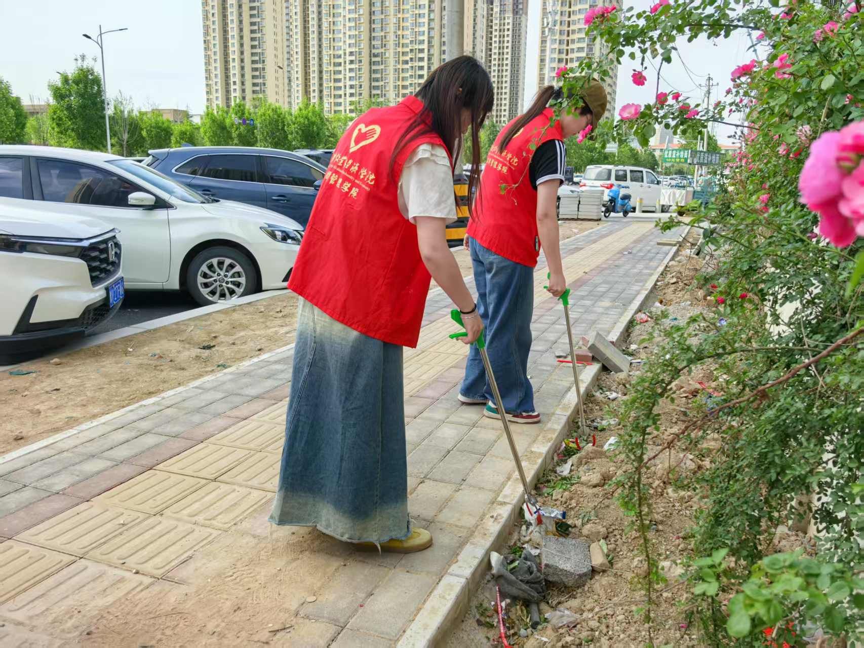 活动中,志愿者们分成多个小组,手持夹子、垃圾袋等工具,对社区内的卫生死角、绿化带、楼道口等区域进行全面清理。大家分工协作,认真捡拾烟头、纸屑、废弃包装等垃圾;活动过程中,阳光渐渐变得强烈,但志愿者们的热情丝毫不减。有人弯腰捡拾绿化带里的烟头纸屑,还有人仔细清理道路的缝隙里的垃圾。汗水浸湿了他们的衣服,灰尘沾满了他们的鞋子,但看到一袋袋垃圾被清理干净,每个人的脸上都洋溢着满足的笑容。在劳动过程中,志愿者们从最初的生疏到逐渐熟练,从单纯的完成任务到真正理解服务他人的意义,同学们切实认识到打造干净整洁环境背后需要付出的努力与汗水,他们积极响应,决心在今后的生活中,自觉爱护环境,尊重每一位劳动者的劳动成果。