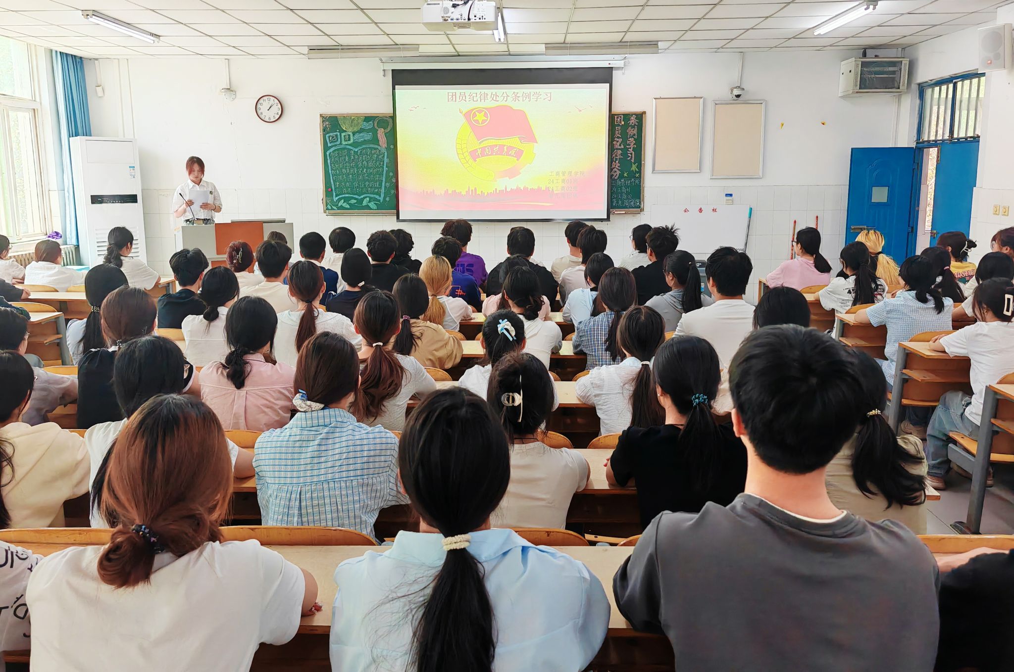 为深入学习贯彻《中国共产主义青年团纪律处分条例》,强化同学们的纪律意识,筑牢思想防线,引导青年严守团规团纪,争做遵规守纪的先锋模范,ok138cn太阳集团古天乐于4月25日组织开展了“严纪守初心,青春勇担当”主题团课。