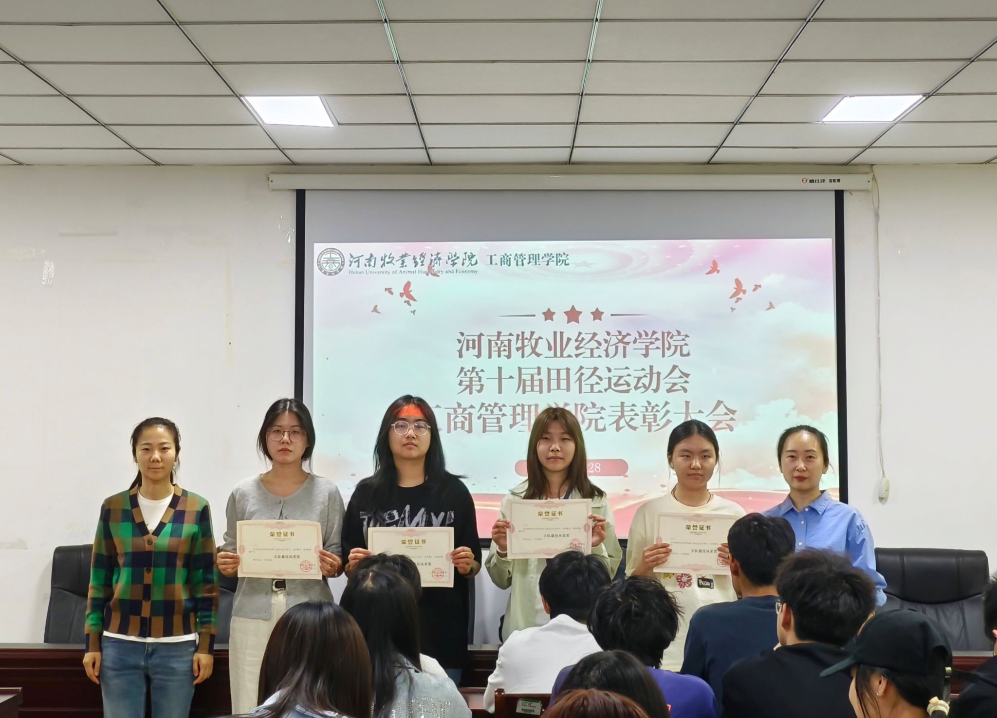 会上,学院党委副书记詹珅充分肯定了运动员的拼搏精神和团队协作能力,强调“赛场上的每一滴汗水都是青春的勋章”,并鼓励同学们将体育精神融入日常学习生活,持续追求卓越。接着,团委书记贾雪宣读表彰名单,并对学生会及志愿者的后勤保障工作给予了高度评价。随后,詹珅、贾雪、周玉洁为胡炜昊、刘颖、刘金红等获奖运动员代表颁发了荣誉证书及奖品。最后,获奖运动员代表刘颖登台发言,她分享了自己的备赛心路历程,并表示荣誉属于全体并肩作战的伙伴,呼吁同学们始终秉持永不言弃的信念,将赛场上的坚韧与拼搏转化为攀登知识高峰的毅力,以团结协作的精神攻克每一个难关,让青春在持续奋斗中绽放最耀眼的光芒。