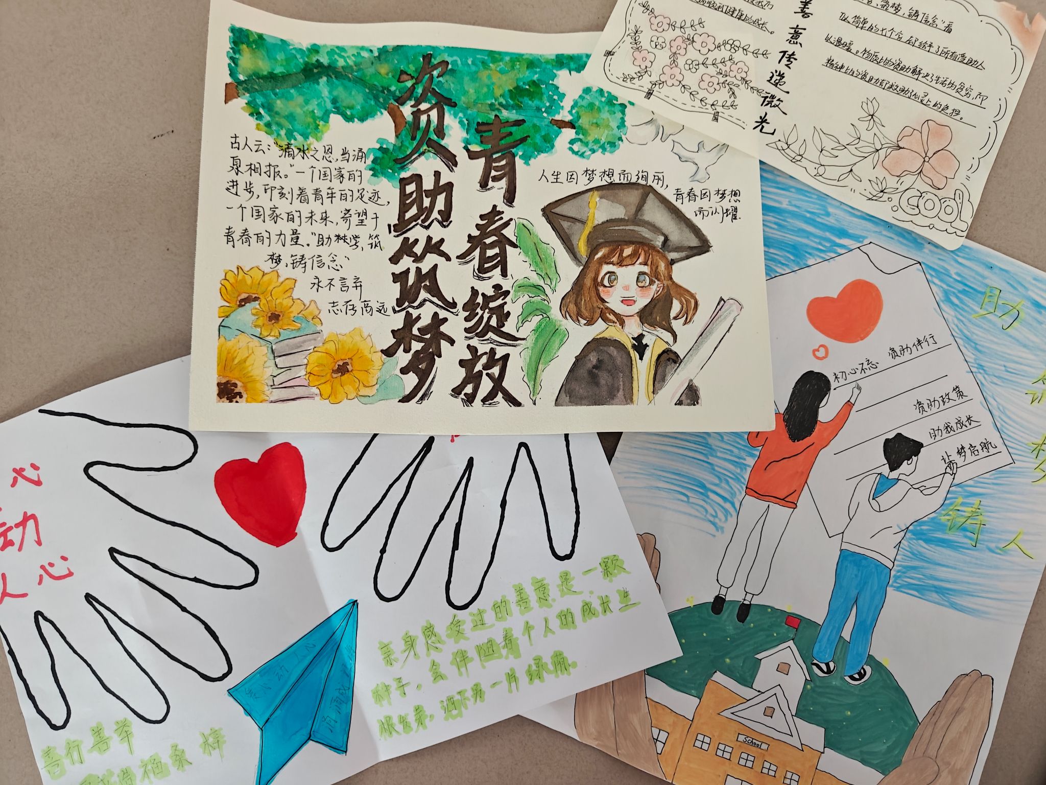 活动期间,同学们积极响应,纷纷拿起画笔,精心描绘与资助相关的手抄报。一幅幅色彩斑斓、内容丰富的手抄报生动展现了资助育人政策的核心内容与实施成果。在创作过程中,同学们对资助育人的意义有了更为深刻的认识,也将这份理解融入到手抄报中,希望通过这种形式让更多人感受到资助政策的温度。通过参与此次活动,同学们深刻体会到资助政策对困难群体的重要意义,也感受到艺术创作在传播公益理念中的强大力量,纷纷表示未来将继续积极参与公益活动,用实际行动传递温暖与善意。