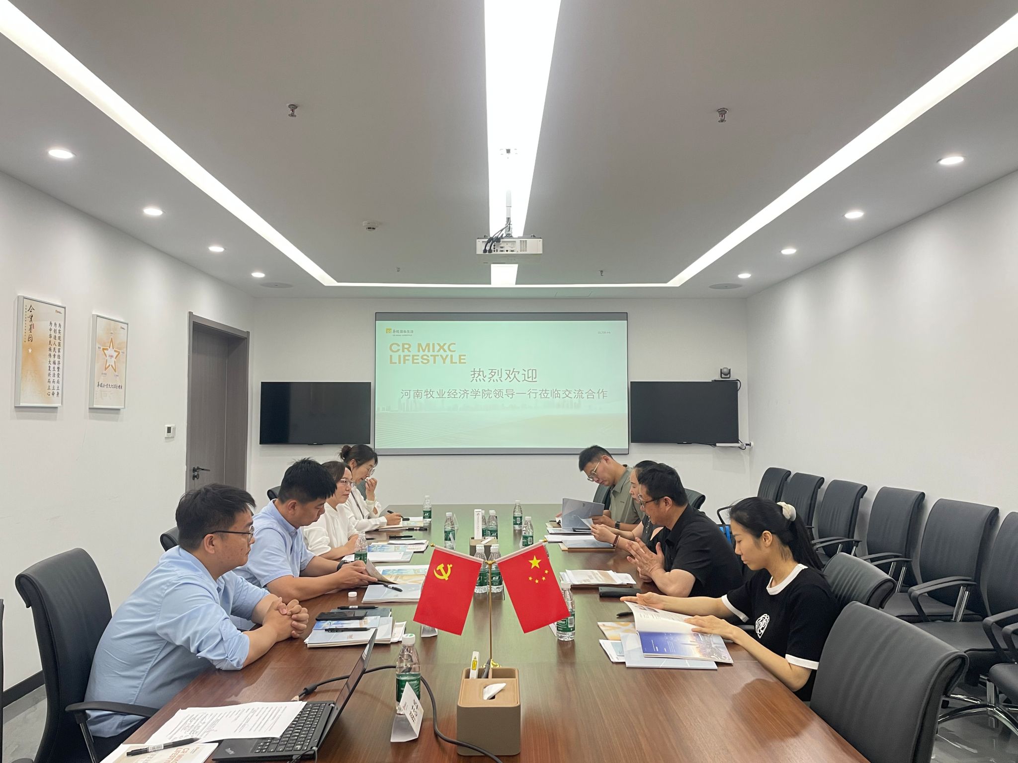 随后,双方前往郑州项目部进行了深入的务实交流。詹珅副书记详细介绍了学院在商科人才培养方面的特色优势和发展方向,并表达了与行业前沿需求精准对接、输送高素质人才的坚定意愿。刘总对学院的育人成果给予了高度评价,并详细阐述了华润万象生活在城市综合体运营、人才梯队建设方面的战略规划及人才需求。双方就“实习基地共建”“课程实践嵌入”“管培生校园招聘”等议题进行了深入的讨论,在协同育人、资源共享、就业拓展等方面达成了广泛共识和初步的合作意向,为未来实质性的合作勾勒出了明确的蓝图。