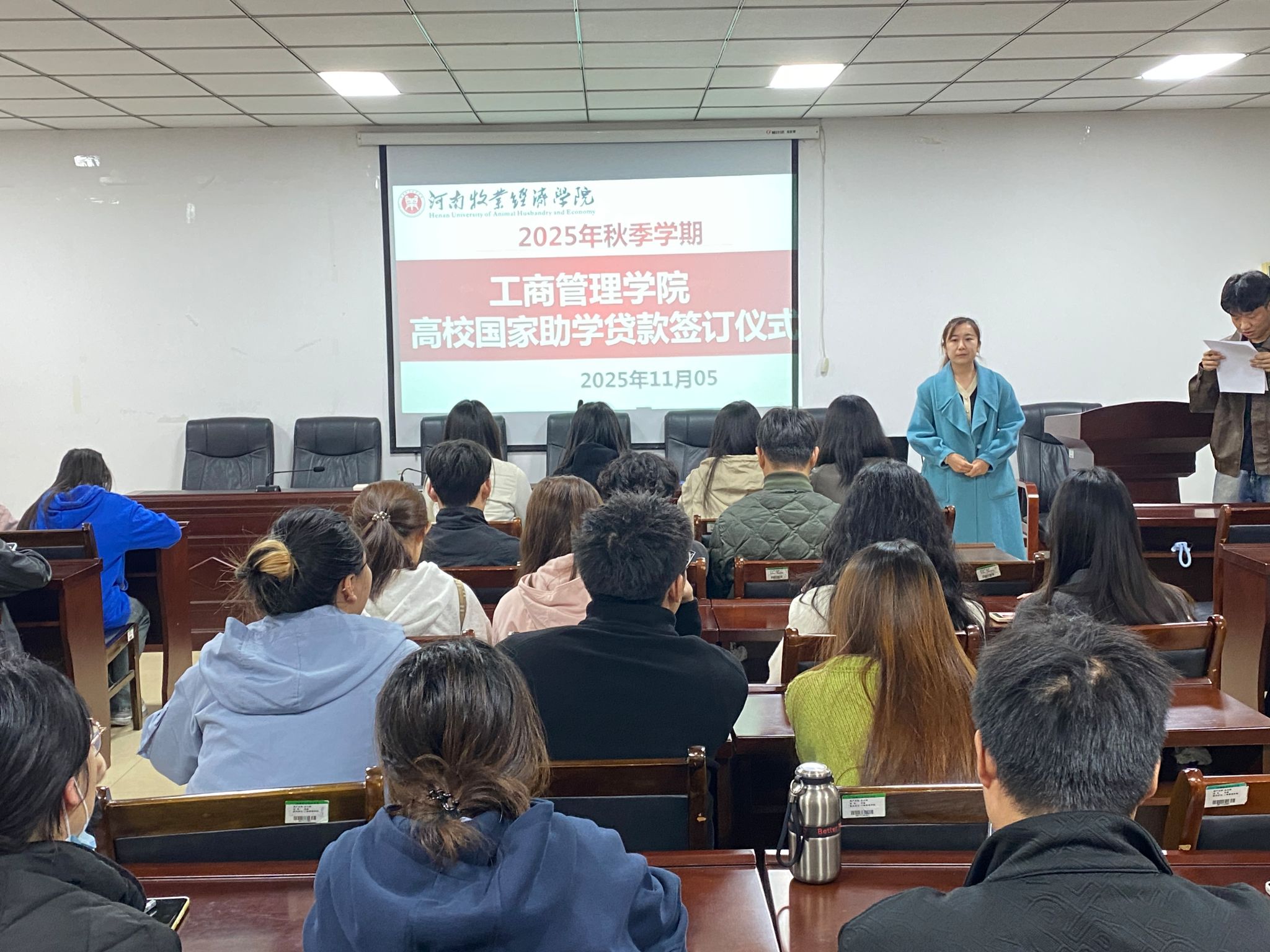深入贯彻国家资助政策,扎实推进我校高校助学贷款工作落地见效,进一步强化学生诚信意识,11月5日,ok138cn太阳集团古天乐举行2025年高校国家助学贷款合同签订仪式暨诚信教育宣讲会。全体申请高校助学贷款的学生参会,宣讲会由ok138cn太阳集团古天乐院团委副书记、资助专干席亚芳老师主持。