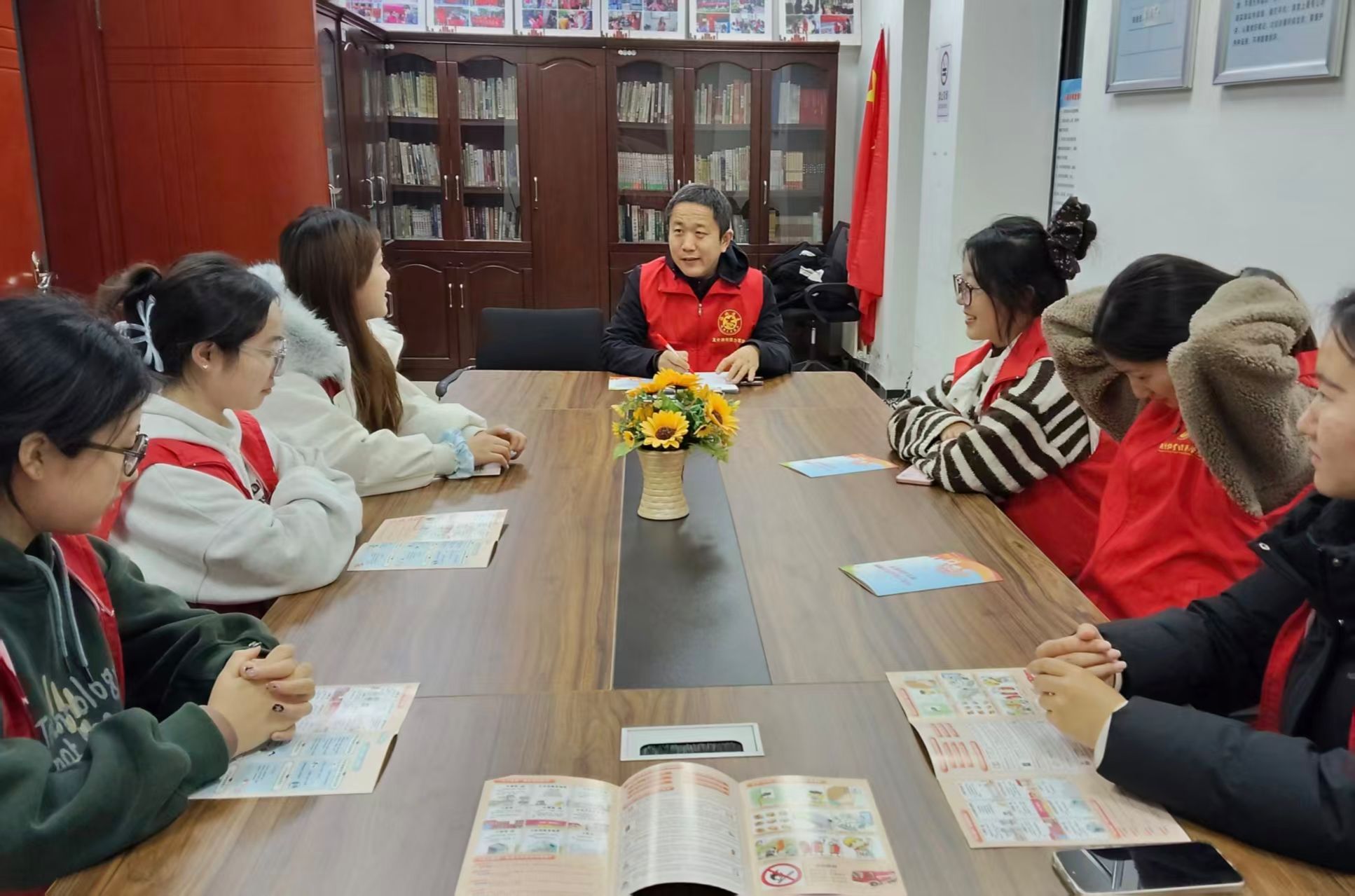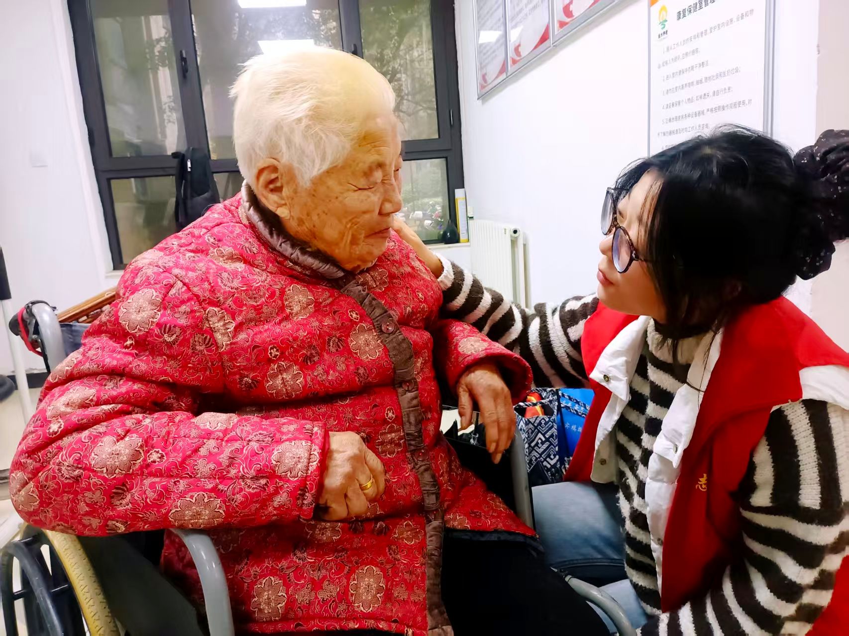 活动当日志愿者们早早在红色花蕊广场集合,身着统一志愿服装,带着饱满的热情与温暖的心意,有序前往社区开展敬老服务。抵达社区后,志愿者们立刻走进老人家中,与老人们拉起家常。他们围坐在老人身边,耐心倾听老人们讲述过往的生活故事,时而点头回应,时而轻声询问,用真诚的陪伴驱散老人们的孤独感。随后,志愿者们陪同老人们前往社区活动中心参加健康讲座。讲座过程中,志愿者们始终贴心地守在老人身旁,有的帮老人调整座椅角度,有的凑近老人耳边轻声复述讲座重点,确保老人听清每一个健康知识;当老人对饮食调理、慢性病护理等内容产生疑问时,志愿者们第一时间协助老人向讲师请教,并用通俗的语言为老人答疑解惑,还主动与老人交流听讲感受,让老人们在学习健康知识的同时,更真切地感受到来自晚辈的关怀与温暖。健康讲座结束后,志愿者们并未停下服务的脚步,而是主动参与社区组织的消防知识培训。培训现场,他们全神贯注地聆听讲师讲解火灾预防要点、灭火器实操方法、疏散逃生技巧等内容,手中的笔记本记得满满当当,遇到重点环节还拿出手机拍摄记录,不时与同伴交流学习心得。志愿者们表示,此次培训不仅提升了自身的消防安全意识,更为后续向社区老人们普及消防知识、排查居住安全隐患做好了充分准备,切实为老人的安全生活保驾护航。