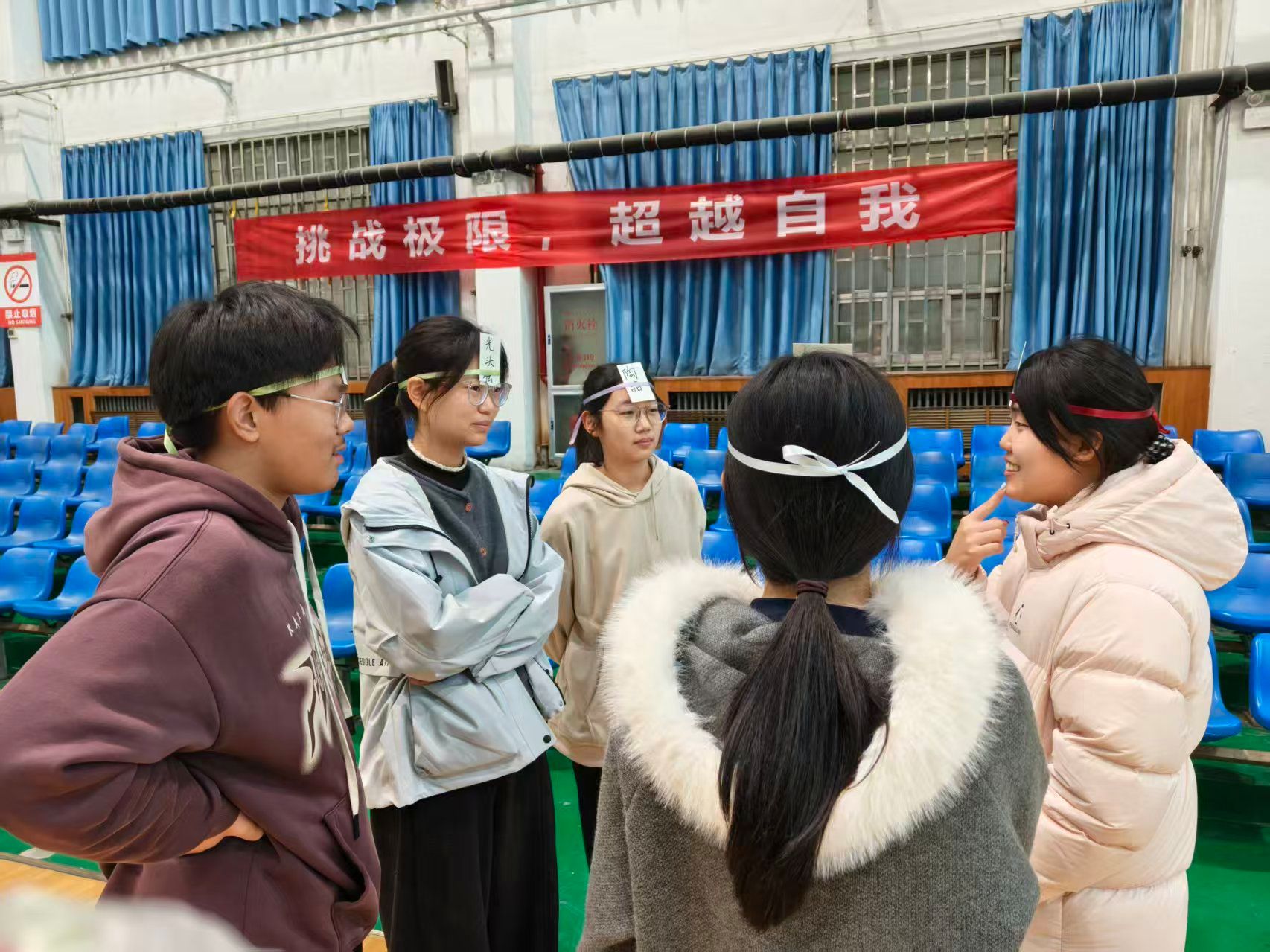 活动伊始,“信息传递”挑战赛率先拉开帷幕。各小组同学迅速集结,严阵以待。每组的第一个人认真阅读复杂话语后,便开启了紧张的信息传递之旅。尽管过程中偶尔会出现一些小偏差,但大家都积极应对,凭借着团队的智慧和默契不断调整。这一环节不仅考验了同学们的信息接收和传递能力,更让大家体会到团队协作中沟通准确性的重要性。紧接着,“名字 + 技能接龙”游戏将现场气氛推向了高潮。随着接龙的进行,难度逐渐增加,但同学们始终保持着高度的专注。在这个过程中,同学们不仅记住了彼此的名字和技能,更增进了相互之间的了解。最后一场“猜猜我是谁”游戏同样趣味十足。同学们每人头上绑着一张写有人物名称的名片,却无法看到自己头上的内容。提问过程中,同学们既要思考问题的有效性,又要根据对方的回答调整猜测方向。最终在大家的共同努力下,这场游戏也圆满结束。