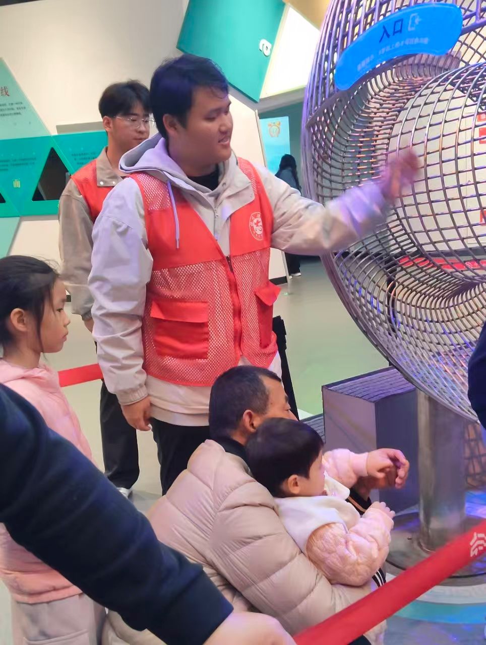 活动前期,学院精心组织志愿者培训,邀请科技馆专业人员围绕科普知识讲解逻辑、展品操作安全规范、志愿服务礼仪规范等核心内容开展专题指导,通过案例演示、模拟讲解、实操演练等方式,帮助志愿者夯实服务基础、提升服务质效。活动期间,志愿者们以小组为单位,在科技馆常设展厅、互动体验区等指定区域有序开展服务:面对游客的好奇提问,他们用通俗易懂的语言拆解科学原理,生动诠释展品背后的科技奥秘;在人流密集区域,他们耐心引导参观秩序,提醒游客文明参观、安全体验;针对互动类展品,他们细致指导操作方法,助力游客沉浸式感受科技魅力,用热情与专业赢得了游客和科技馆工作人员的一致好评。