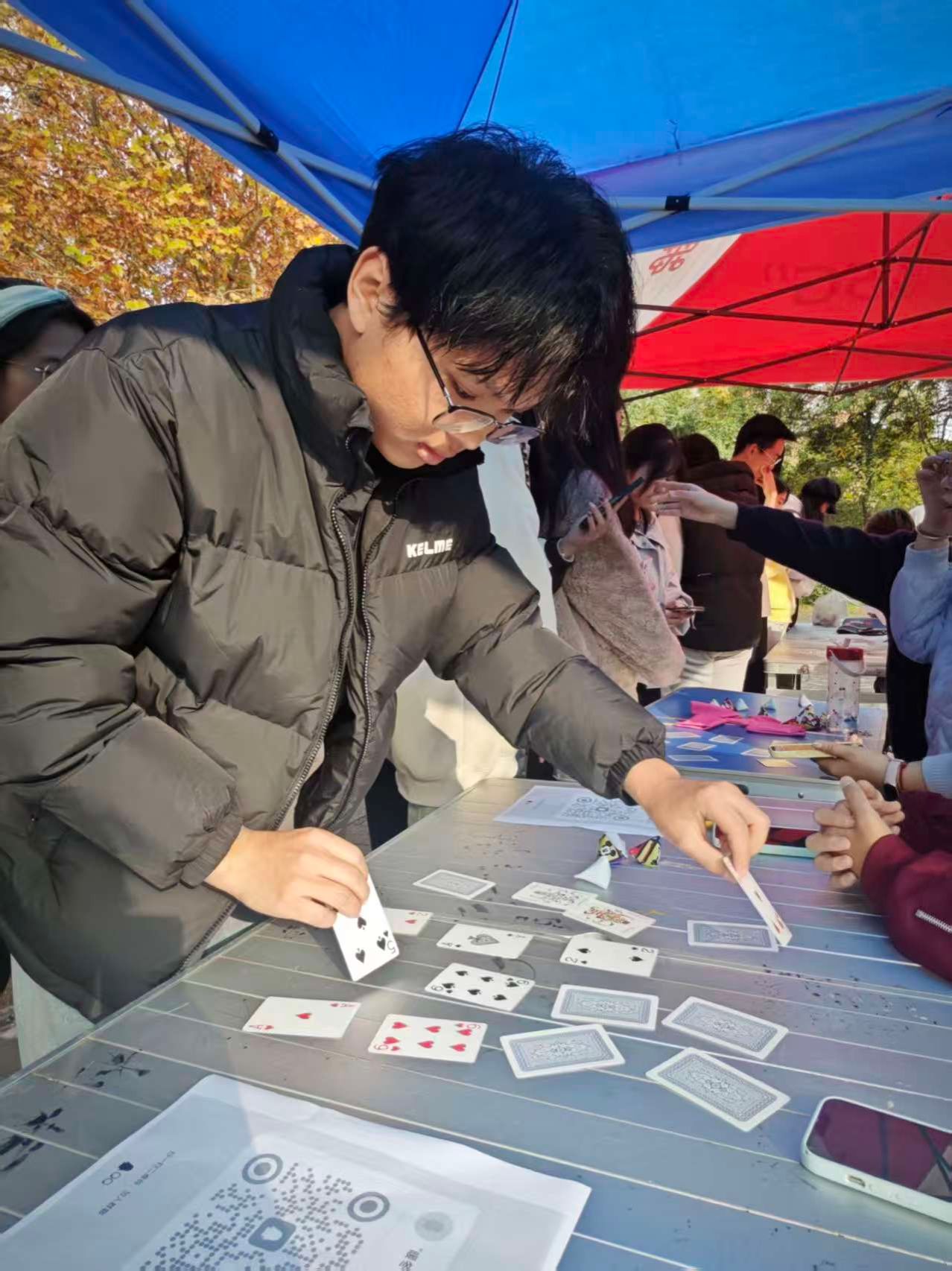 本次活动以“趣味互动+文化体验”为核心,设置了三个特色小游戏:丢沙包要求参与者将五个沙包置于桌上,单手扔起后接住全部五个即挑战成功;投壶还原古代文人雅趣,参与者站在指定距离外将箭矢投向壶内,投中数量越多成就感越强;对对碰则需参与者翻开背面朝上的扑克牌,找出内容匹配的卡片,考验观察力与记忆力,现场同学或反复尝试、或互相鼓劲,氛围轻松热烈。“原本觉得立冬只是一个普通的节气,没想到学院的活动这么有意思!”参与活动的同学说道,“投壶游戏让我感受到了传统文化的魅力,丢沙包和对对碰则让我找回了童年的快乐,还认识了不少新朋友,特别有意义。”活动工作人员也表示,学院通过节气主题活动传递温暖,让远离家乡的自己感受到了“家”的氛围,希望以后能有更多这样的活动。