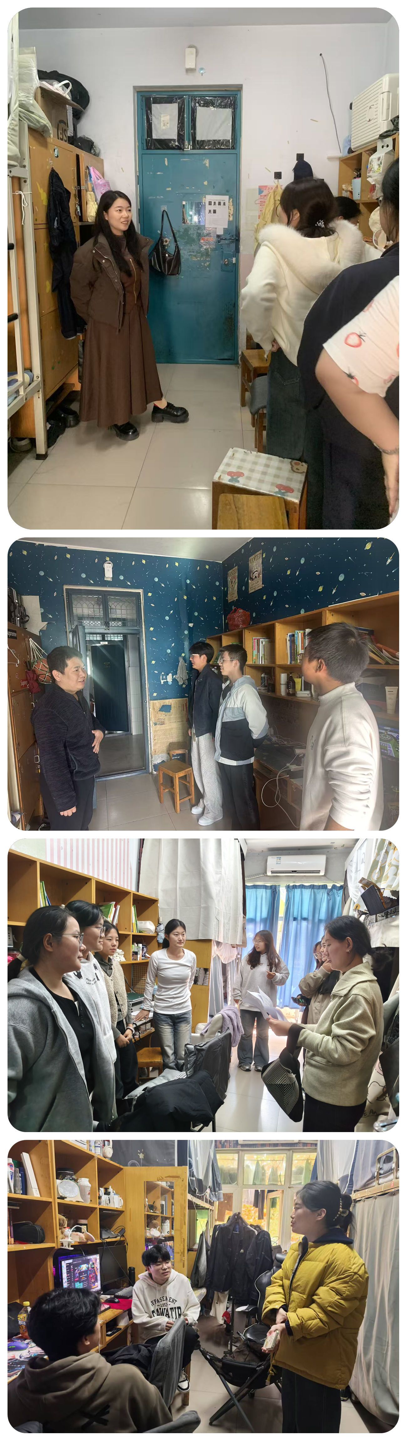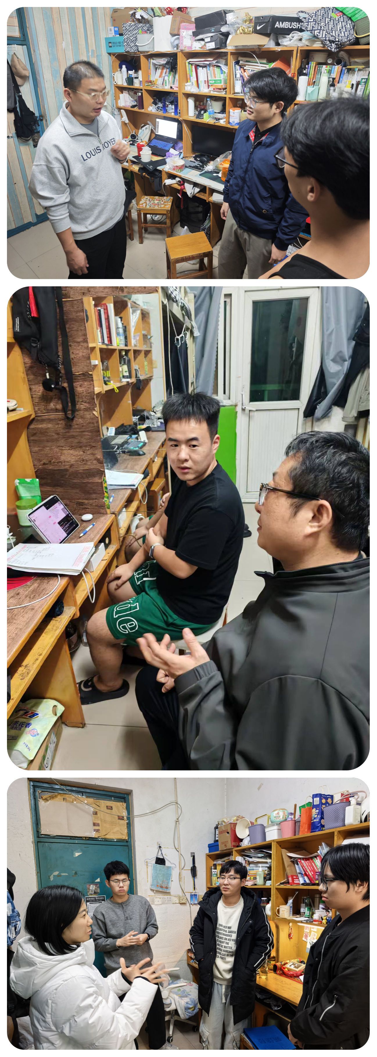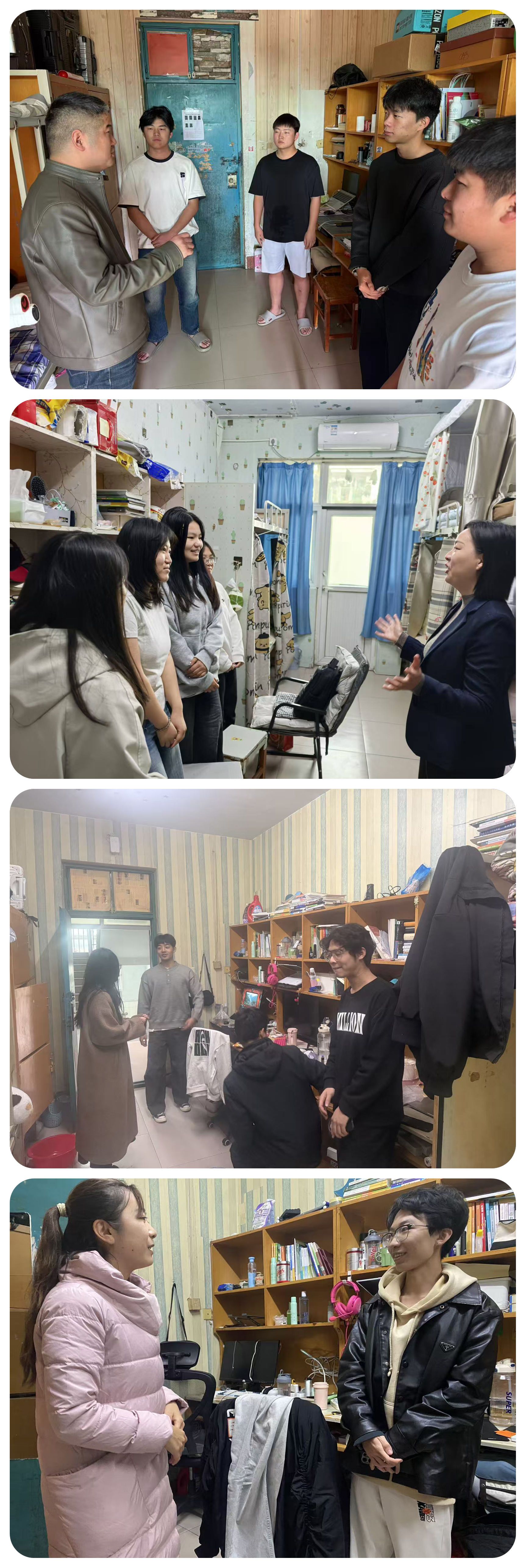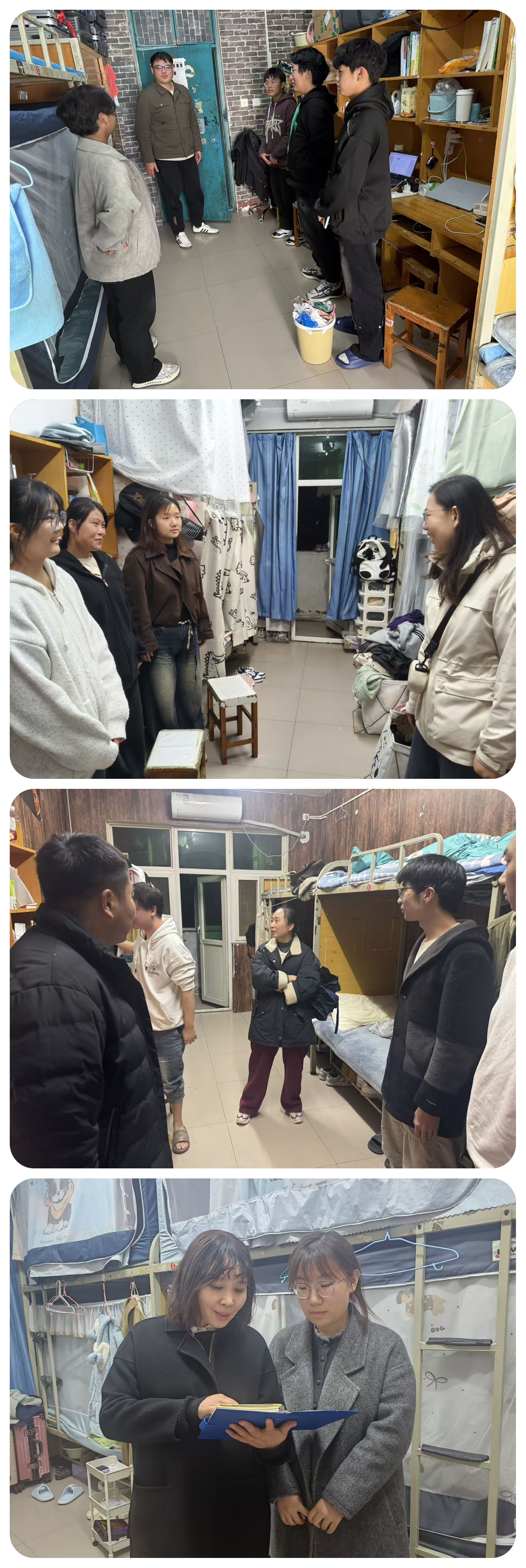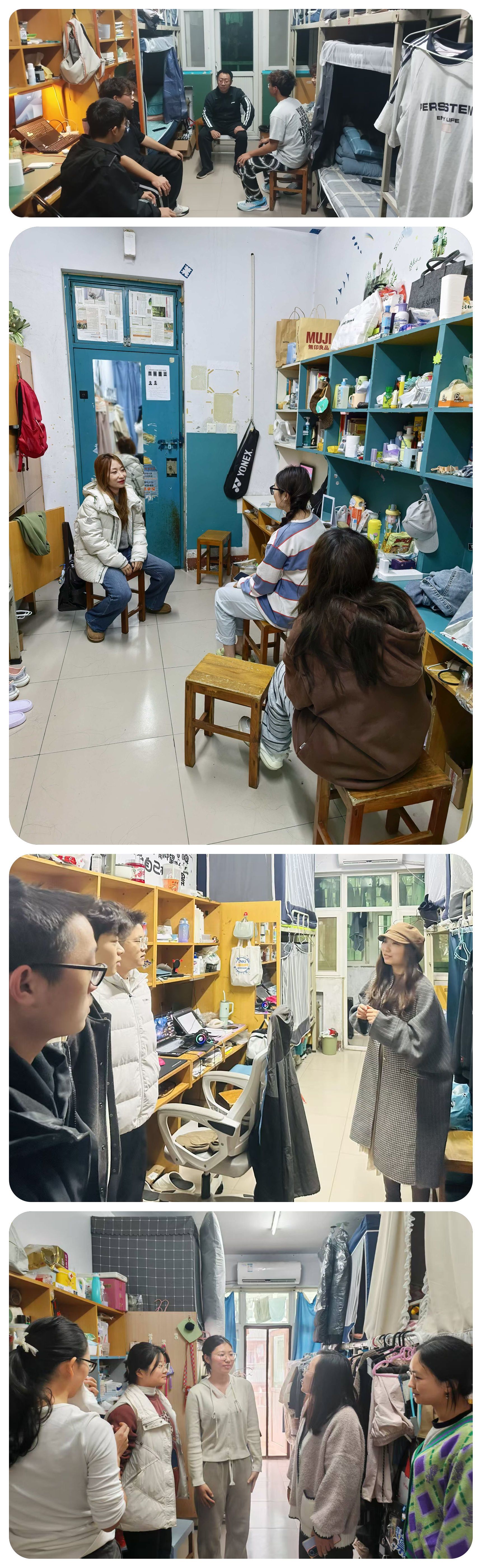 为深入贯彻落实立德树人根本任务,推动“三全育人”理念走深走实,落实校党委学工部文明养成主题教育活动,学院于11月4日-8 组织全体班主任、辅导员深入学生宿舍,开展“文明养成·生涯引航·安全护航”专项行动,通过“面对面”交流、“手把手”指导,将文明素养养成、思想政治教育、职业规划引导与安全教育、网络安全等有机融合,为学生的成长成才筑牢根基。