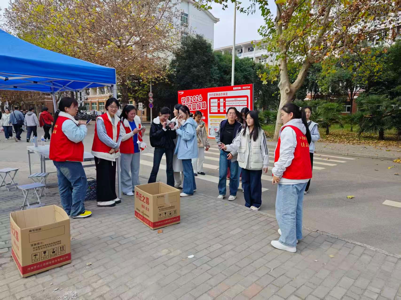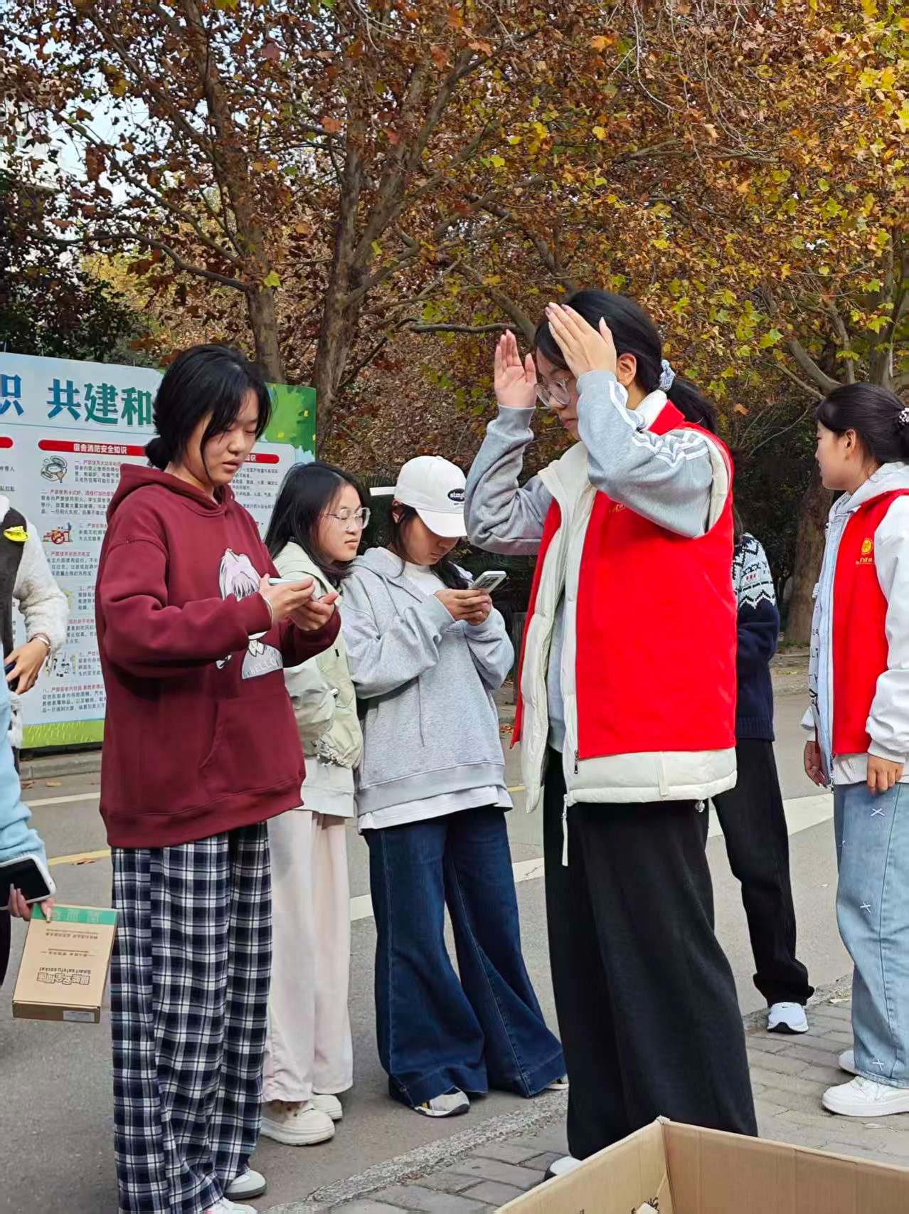 活动期间,同学们积极响应,踊跃参与。本次活动以“趣”为桥,解锁环保新玩法,同学们带着提前收集的塑料瓶、快递盒等可回收物在志愿者的引导下,有序站到投掷线后一一排队,这条线既保障了投掷安全,也让“投瓶入筐”多了几分游戏的仪式感。投放完成后,志愿者会主动上前,向同学们介绍该类物品的回收价值,比如“一个塑料瓶回收后可再加工成纤维制品”,让大家直观感受到“变废为宝”的意义。整个过程中,志愿者始终在现场引导流程维持秩序,同学们与志愿者之间互相交流着环保小知识,这不仅能够增进同学们之间的联系,还能传递环保理念,增强对环保的意识。本次活动以“弱化任务感、增强参与感”为核心目的,通过“投瓶入筐”的游戏形式,引导学生主动分类投放塑料瓶、快递盒等可回收物,既借助互动游戏提升参与积极性,高效完成资源收集;又以热闹的活动场景增强吸引力,便于宣传推广、扩大环保行动覆盖面。
