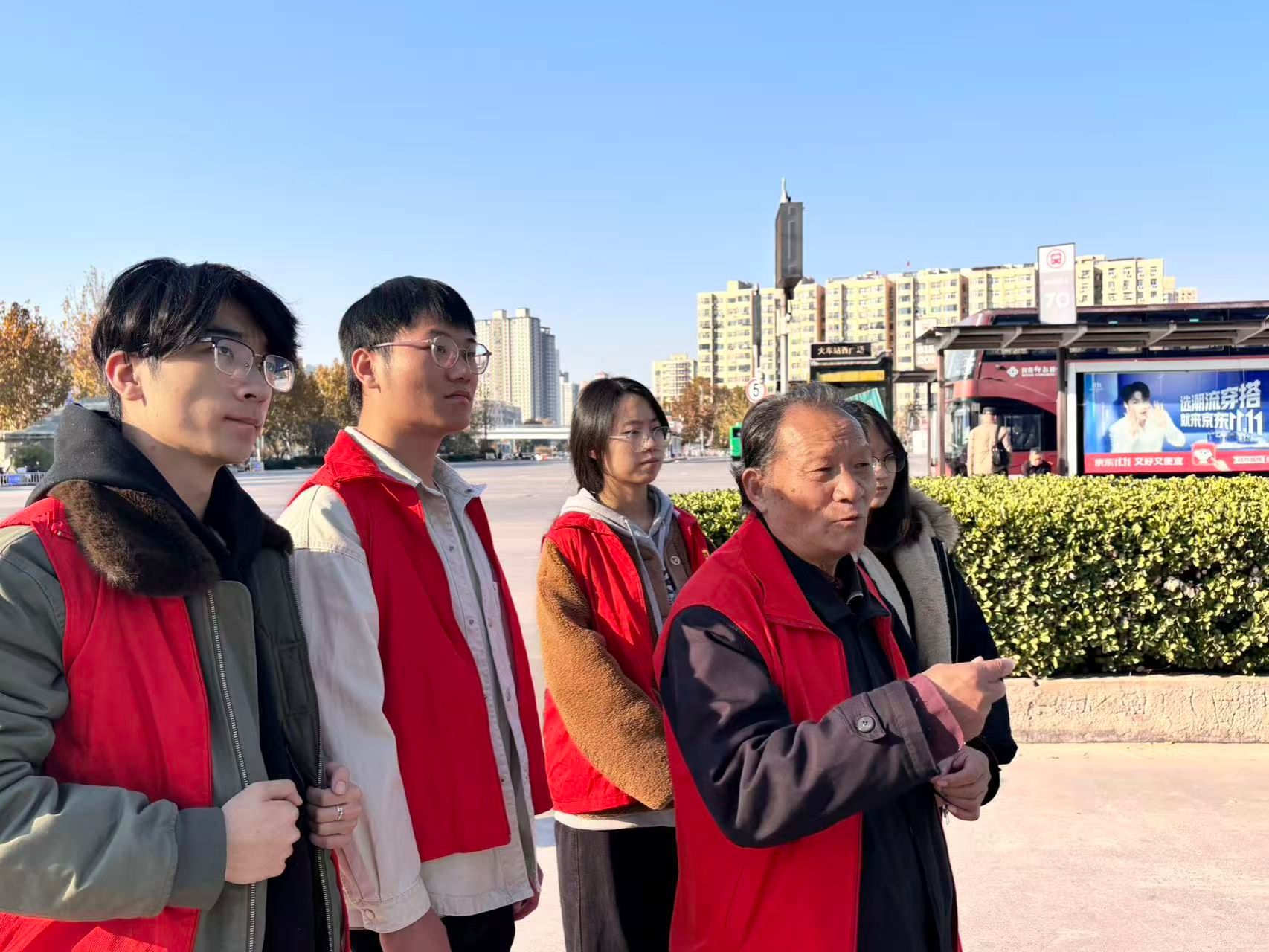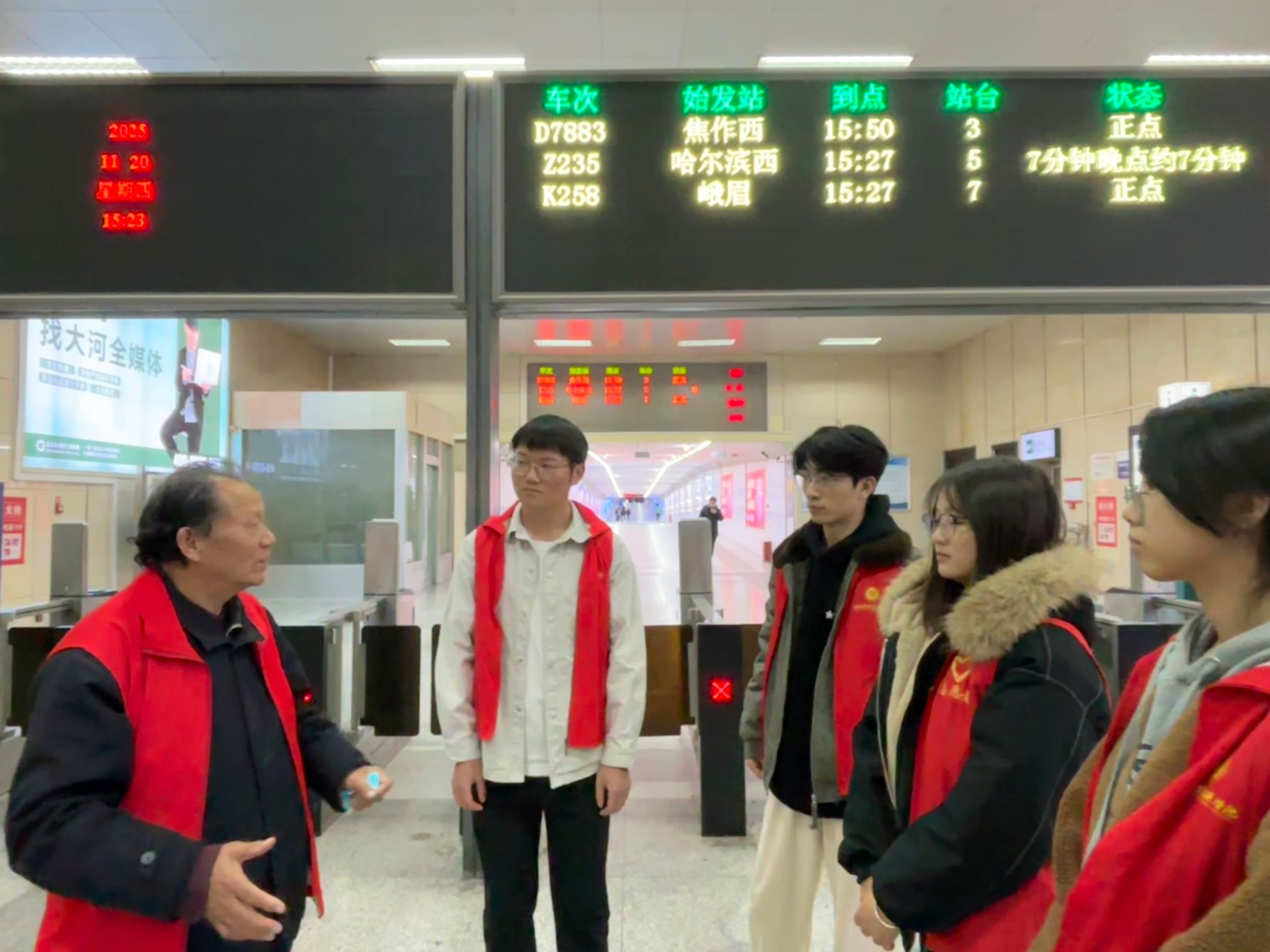 为深入学习践行雷锋精神,弘扬“奉献、友爱、互助、进步”的志愿服务理念,提升我院大学生文明素养养成,同时切实将志愿服务落到实处,助力营造安全、有序、温馨的出行环境,2025年11月20日,ok138cn太阳集团古天乐组织志愿者队伍来到郑州市火车站雷锋服务岗,开展志愿服务活动。