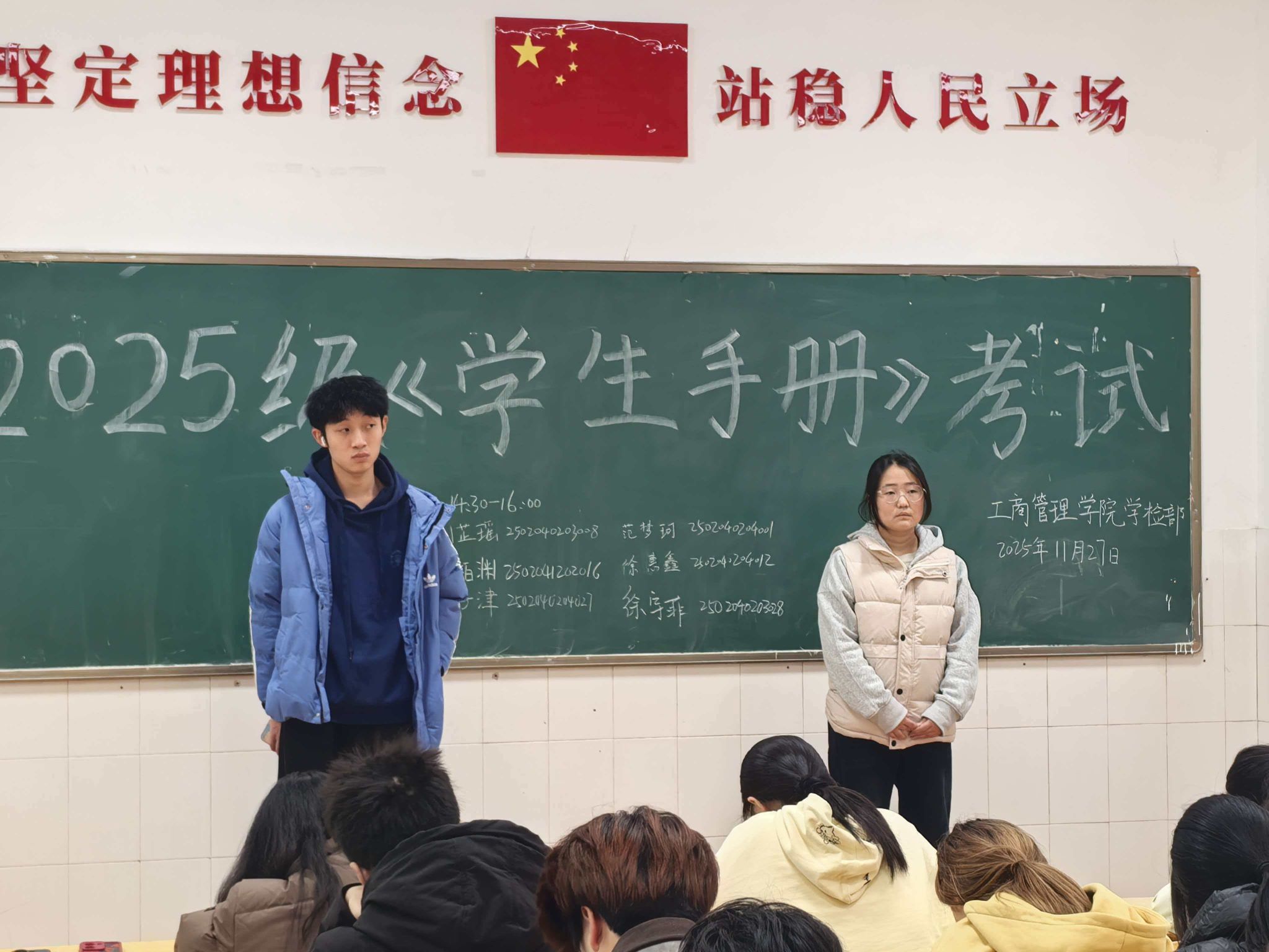 为帮助2025级同学更好地了解学校的规章制度,加强同学们日常行为管理,提高同学们遵纪守法意识,推动ok138cn太阳集团古天乐优良学风建设,ok138cn太阳集团古天乐于2025年11月27日,在教学楼为W209教室举办《学生手册》考试。