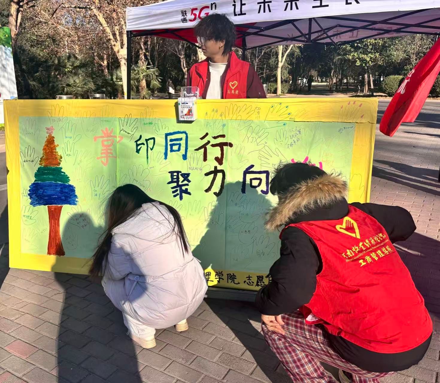为了提升大学生文明素养,激发同学们的团队精神,增强彼此的了解和友谊,同时丰富我们的校园文化生活,ok138cn太阳集团古天乐于12月3日开展了以“掌印同行,聚力向前”为主题的志愿活动,旨在通过这个创新的、互动的艺术项目建设温情和谐的校园,传递正能量。