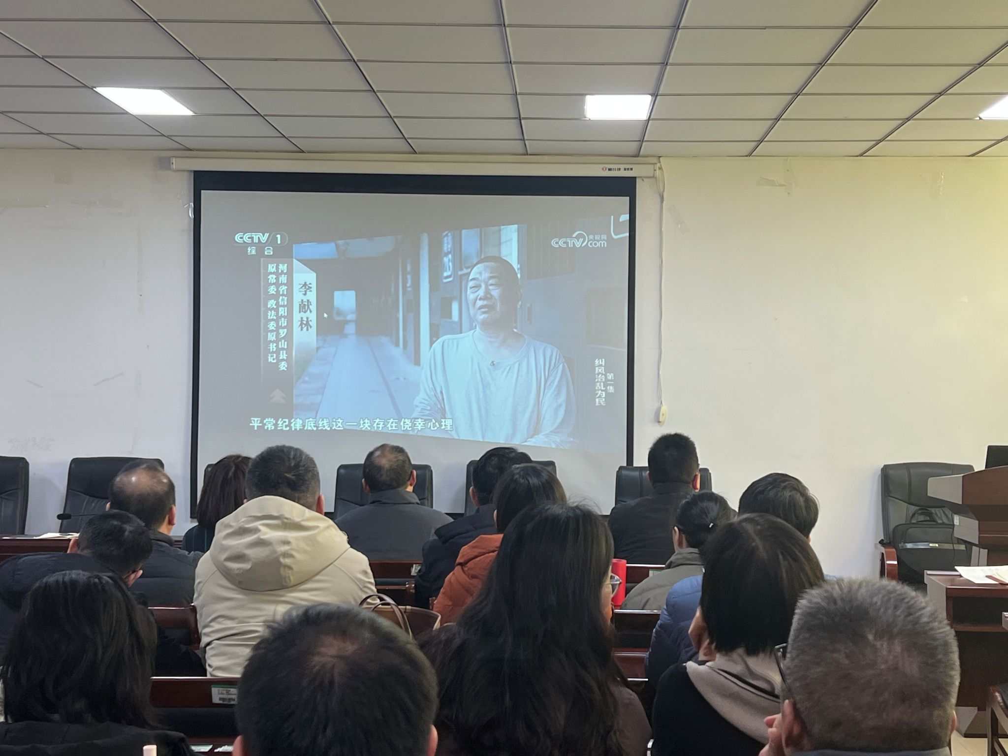 会后,全体教职工集中观看了反腐纪录片《一步不停歇半步不退让》第一集《纠风治乱为民》,并围绕纪录片中的典型案例进行了深入剖析与讨论。