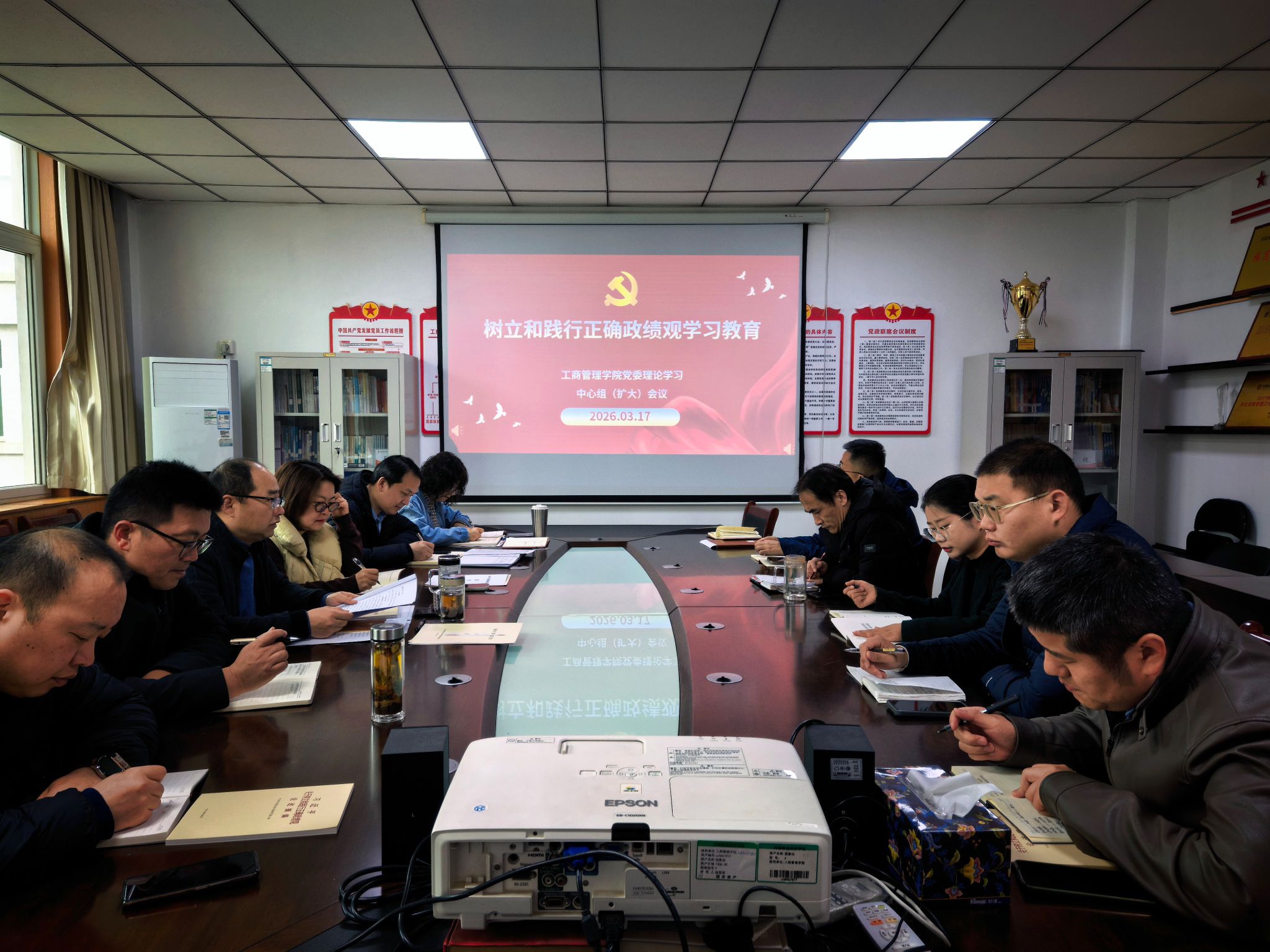 3月17日,工商管理学院党委理论学习中心组(扩大)举行树立和践行正确政绩观专题学习会。学院领导班子成员、党委委员及全体党支部书记参会。会议由党委书记王国辉主持。