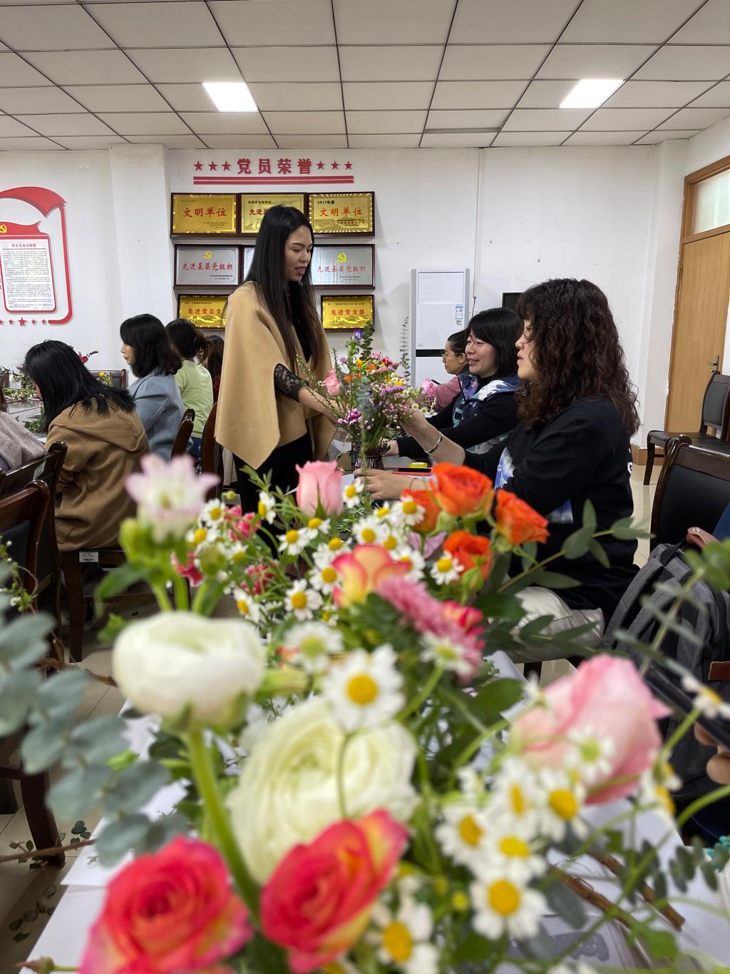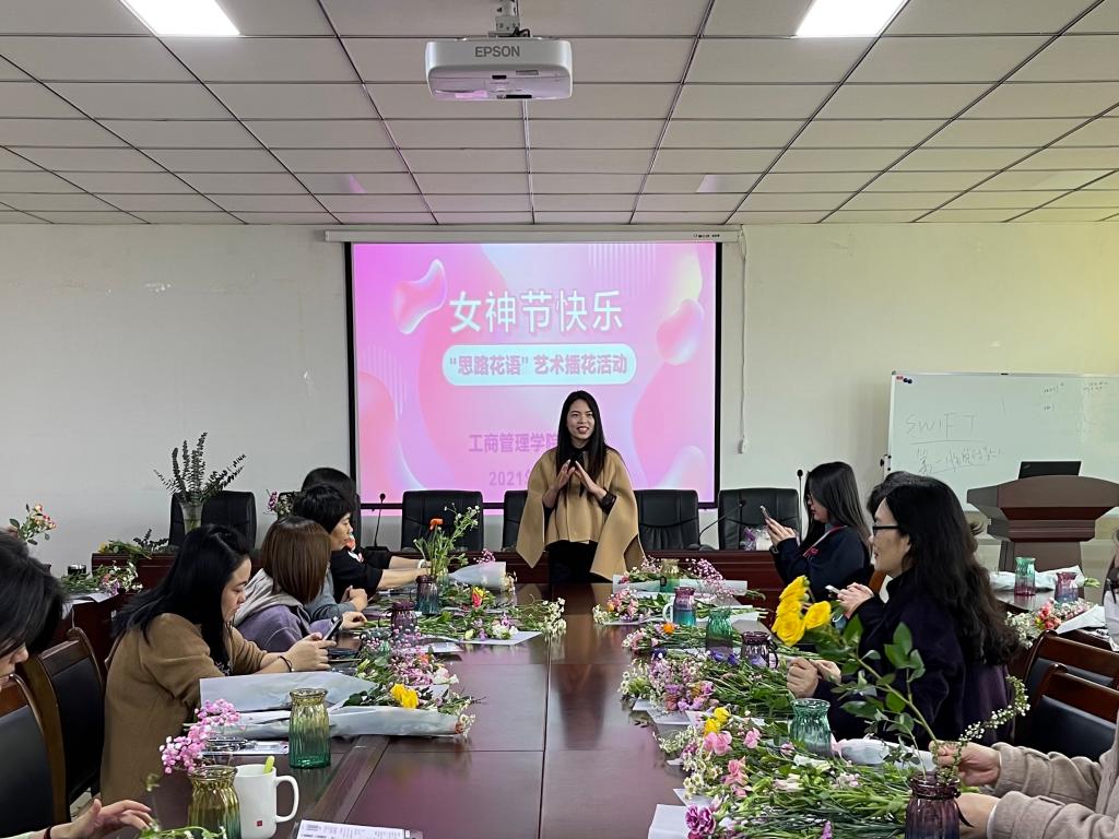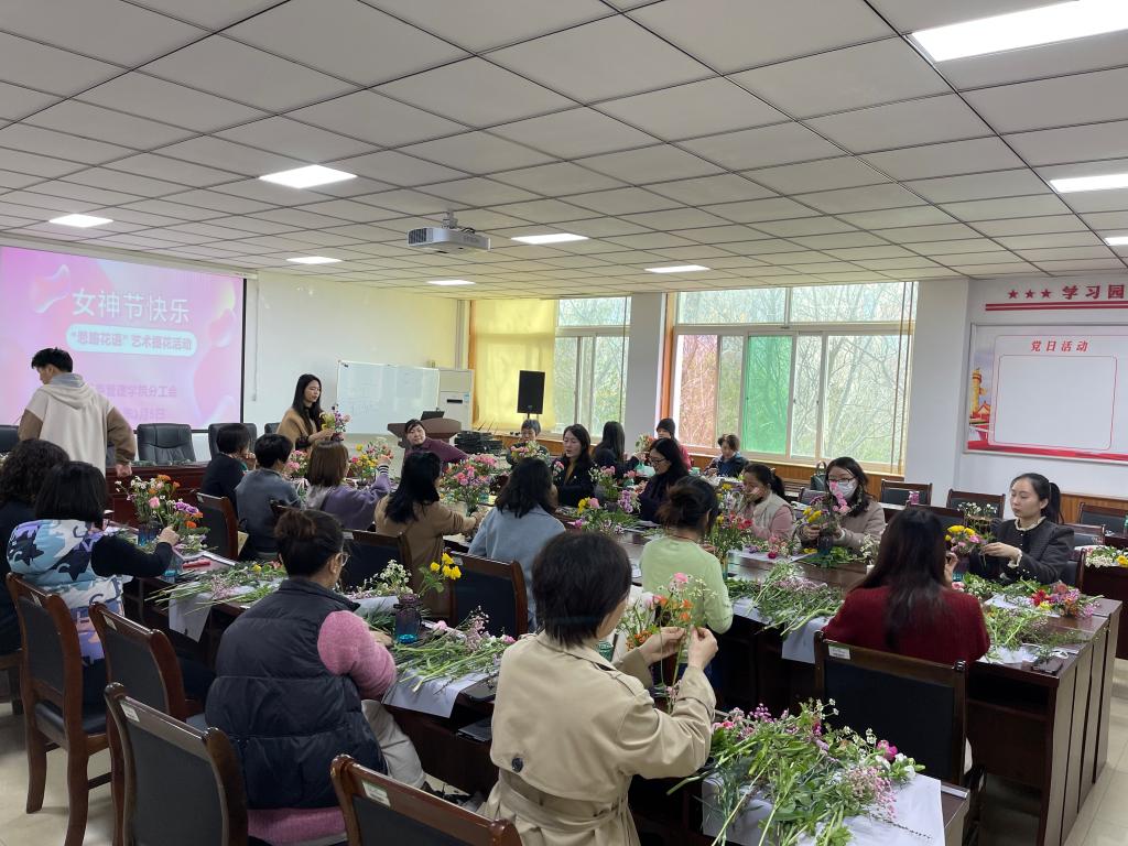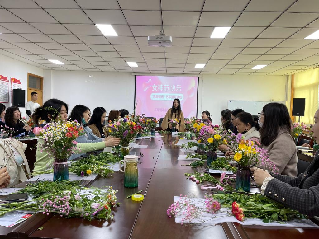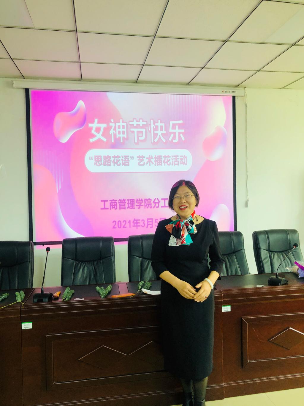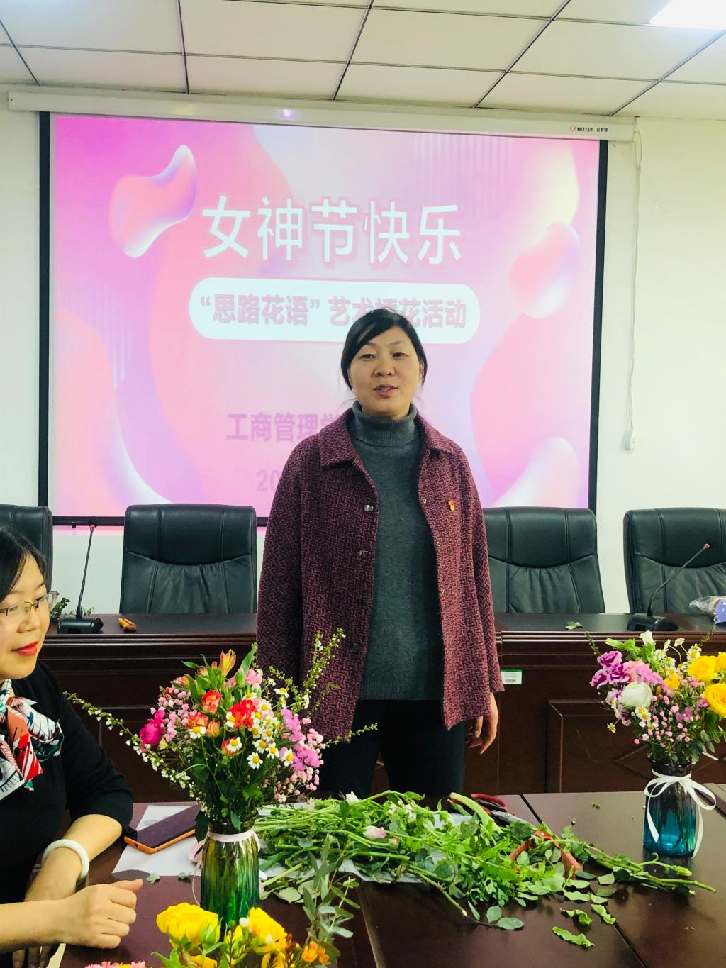 分工会女工委员吕际荣老师代表分工会向一年来辛苦工作的学院全体女同胞们致以节日的祝贺并希望女同胞们能在学习插花的过程中寻找属于自己的快乐、享受当下,从而更加自信,展现新一代女性的风采!