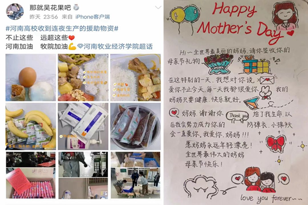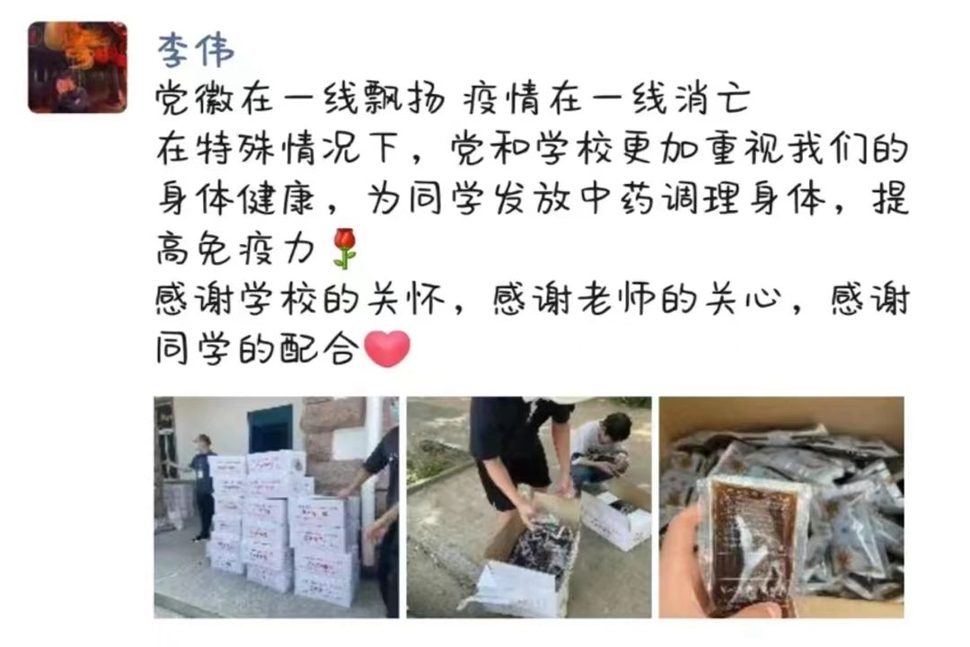 紧急时刻,全体师生进入战“疫”状态。校领导赶赴前线,指引疫情防控;老师们临危请命,无私为学生奉献;为尽量满足学生营养需求,食堂进行合理配餐,力求饭菜多样化,营养均衡化,预防的中药每天按时送达寝室…学校在这小小的细节中温暖了学子,让我们感受到了母校无私的爱。作为在疫情中心的学子们,也在用自己的行动遵守防疫要求,回馈学校的付出,在母亲节到来之际深情告白母校,让大家在危难时刻感受到了来自母校的关爱。