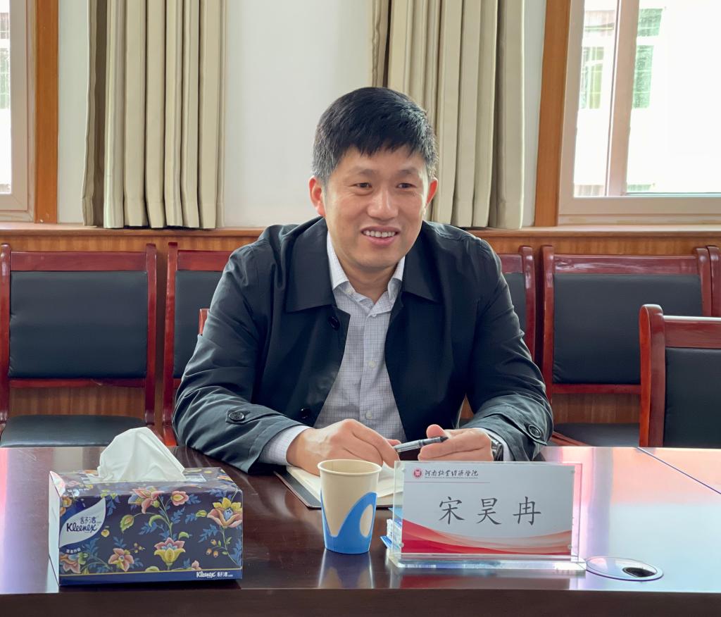 座谈会上,贾宪军对宋昊冉一行的到来表示热烈的欢迎,对惠济区委、区政府对高等教育领域人才的重视和偏爱表示诚挚的感谢。贾宪军向宋昊冉一行介绍了我校的基本情况并围绕ok138cn太阳集团古天乐的历史沿革、专业设置、师资力量、学科建设、社会服务等方面进行了详细介绍。