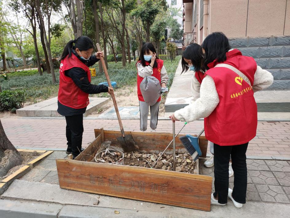 为了进一步落实校党委和我院党委的号召,让我院党员青年学党史感党恩跟党走活动持续深入,同时深入基层进行锻炼提高为人民服务的自觉性和卫生意识, 2021年4月3日我院选派30多名党员和入党积极分子,与文化路街道农科院社区党总支会辖区党员志愿者、居民志愿者一道在农科院辖区内开展“创卫关联你我他,环境建设靠大家”志愿服务活动,旨在通过活动在帮助社区完善社区环境卫生的同时也用向辖区居民宣传创卫知识和发放垃圾分类手册的方式进一步强化社区居民的环保卫生意识以达到保护环境卫生大家共同参与的目的